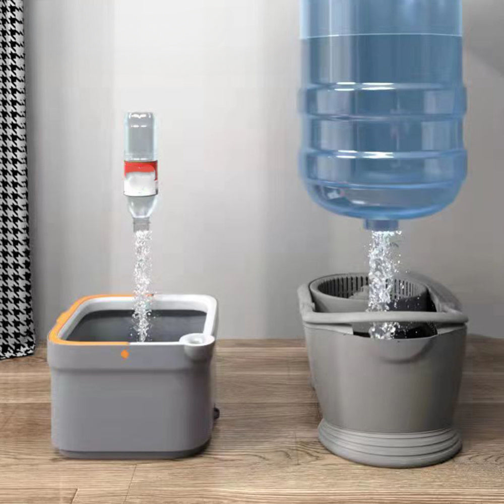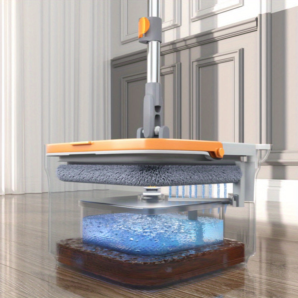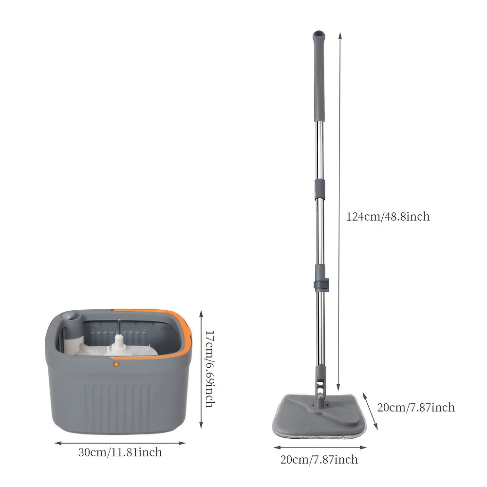 "Aylanadigan Mop To'plami va Chelak - Qo'l bilan yuvish shart emas, Oson tozalash, O'z-o'zini tozalash tizimi, Yog'och, Kafel va Marmar pollari uchun mukammal, Yotoqxona uchun ajoyib, Mustahkam dizayn, Keramika kafel uchun mos."