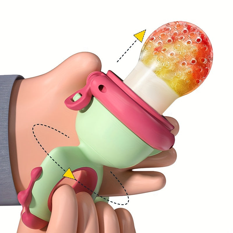 Bolalar va kichik bolalar uchun aylanuvchi itarish turidagi silikon tishlash, sharbat berish uchun qo'shimcha ovqat beruvchi