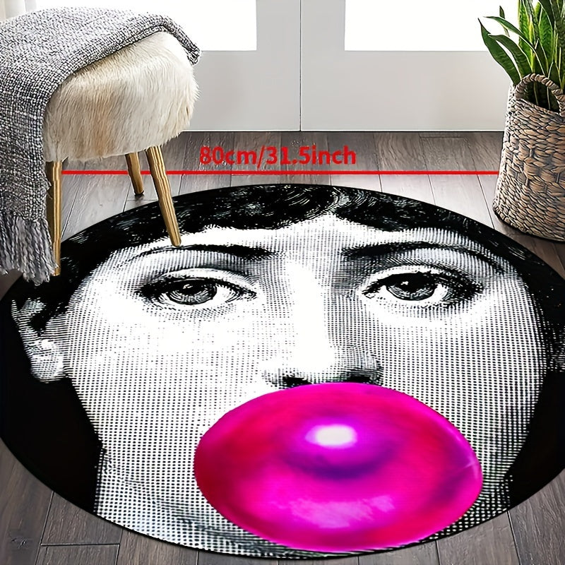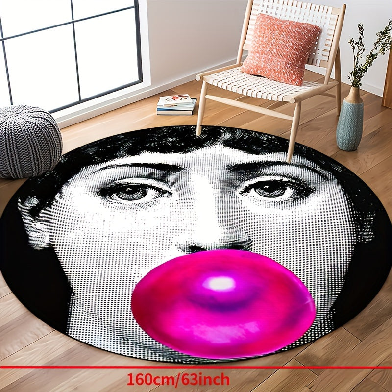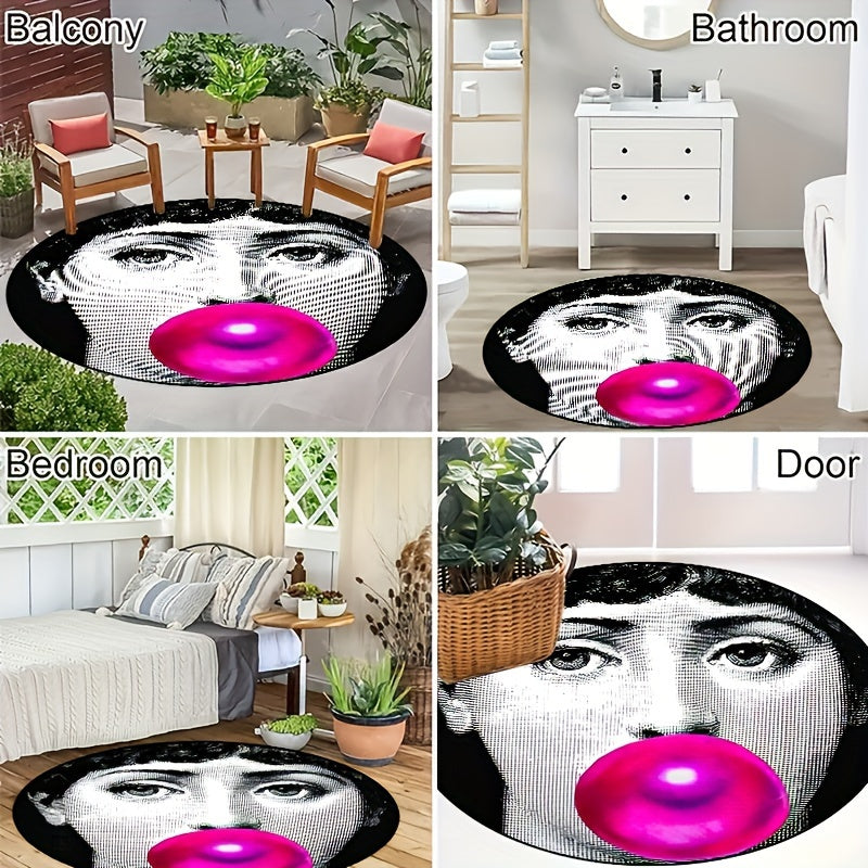 Ayolning ko'pik chayqalayotgan rasmli dumaloq yopishqoqsiz gilam, mashina bilan yuvish mumkin, ichki va tashqi foydalanish uchun