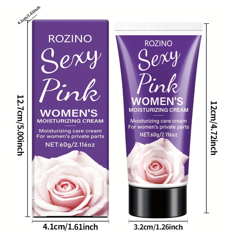 ROZINO 60g Intim Qism Kreemi, Atirgul Hidli, Gippoallergenik, Vitamin E va O'simlik Ekstraktlari bilan Namlantiruvchi, Barcha Terilar Turi uchun Mos, Quruq Teriga Yaroqli, Maxfiy Nozik Teri Parvarishi uchun