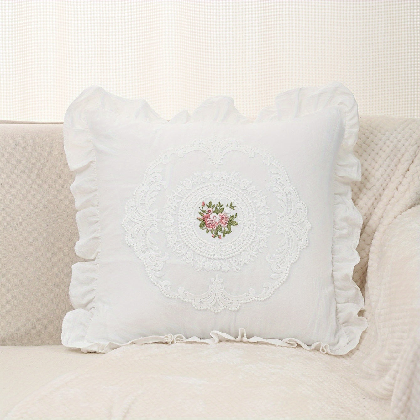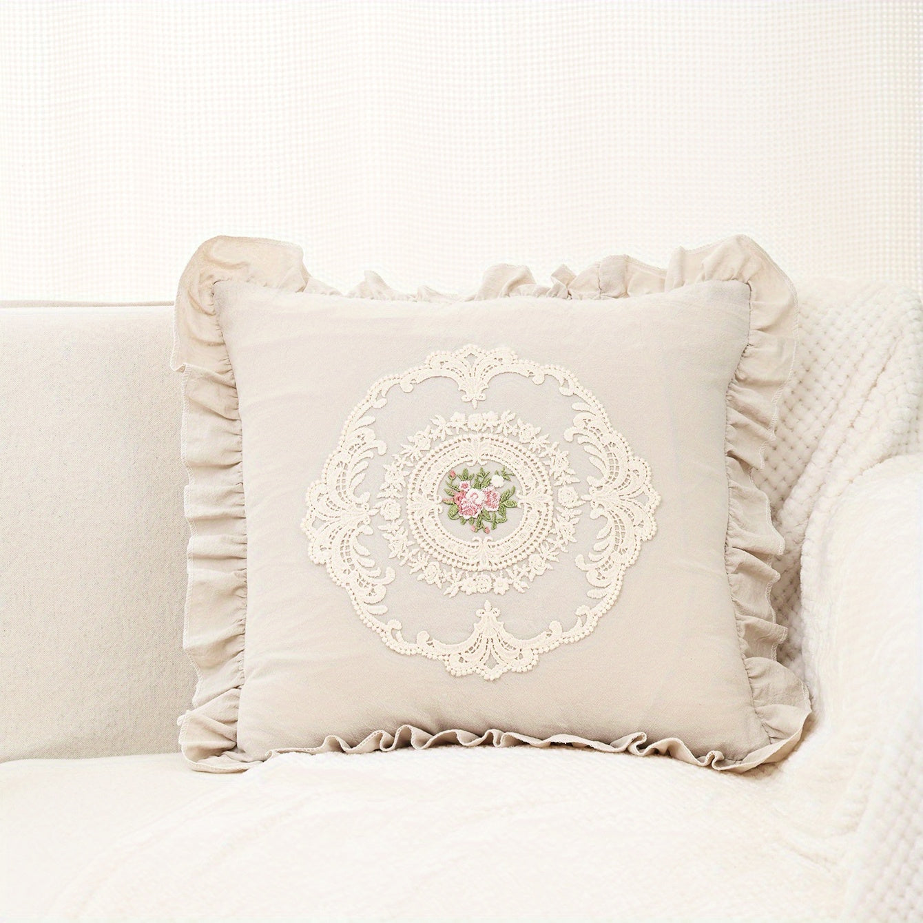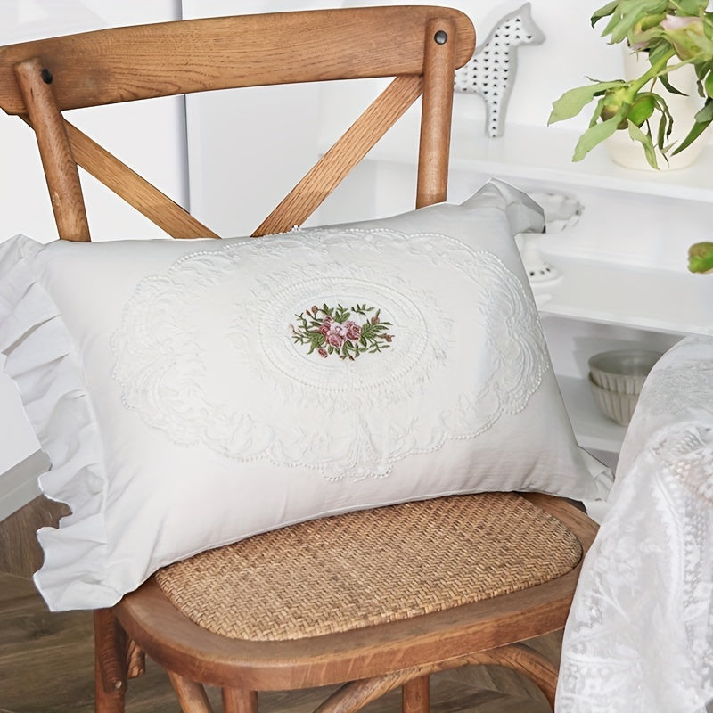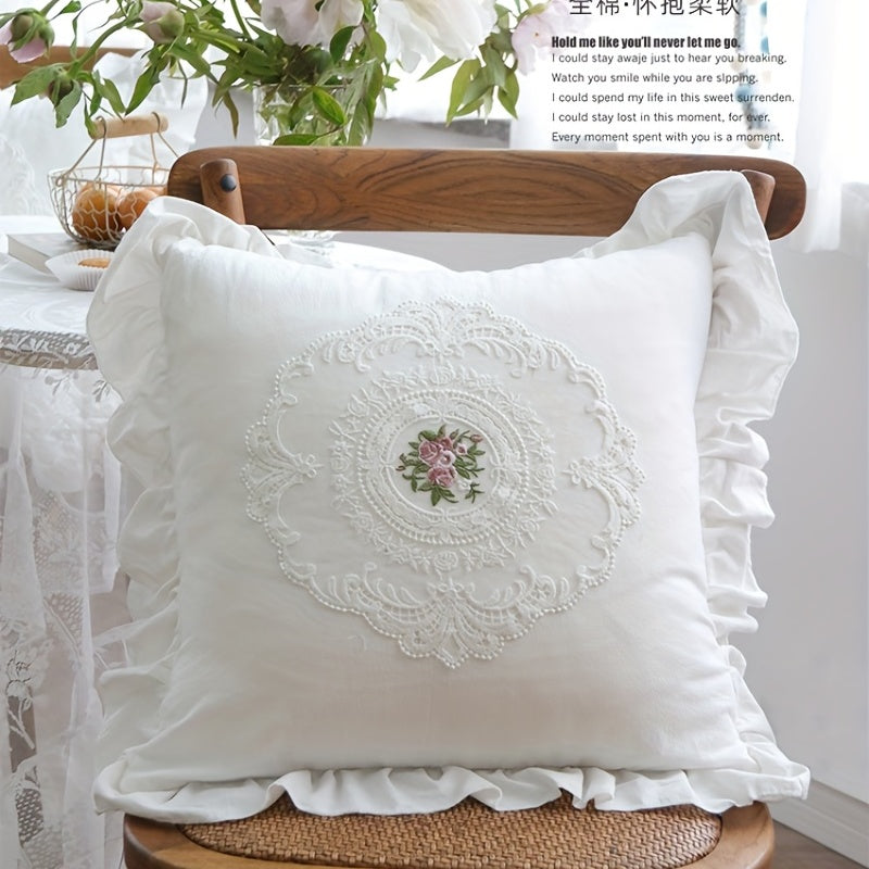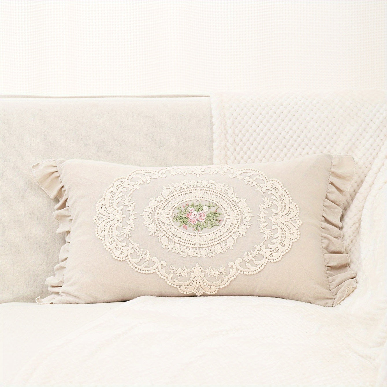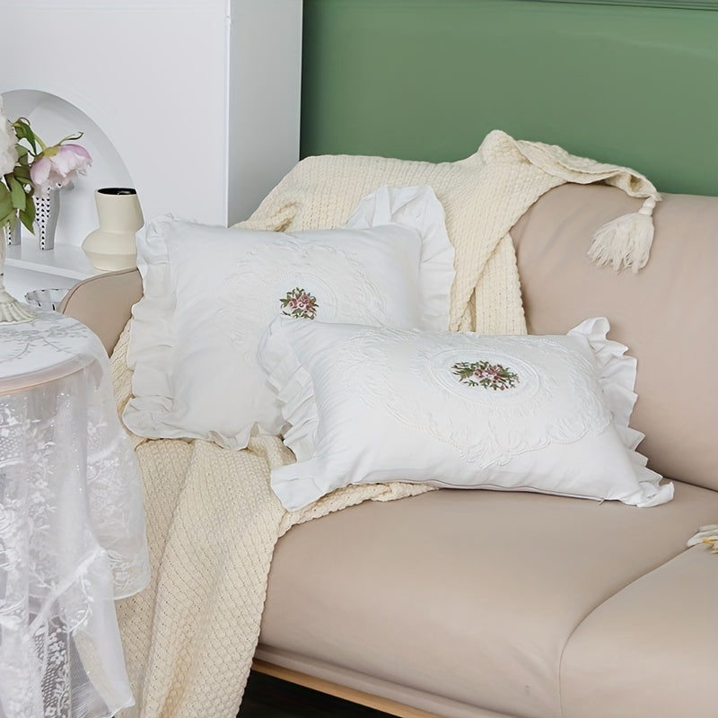 Fransuz qirralari bilan rustik tikuvli yostiq qopqog'i, yashash xonasi yoki yotoqxona bezaklari uchun. Yostiq qo'shimchasi yo'q, 18"x18" yoki 12"x20" o'lchamlarida mavjud.