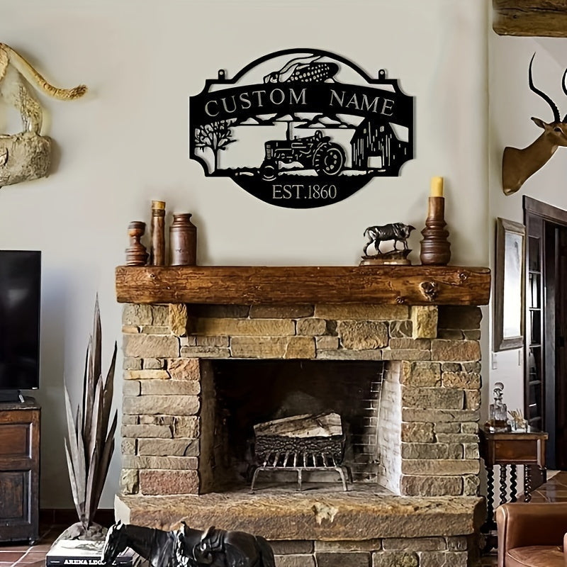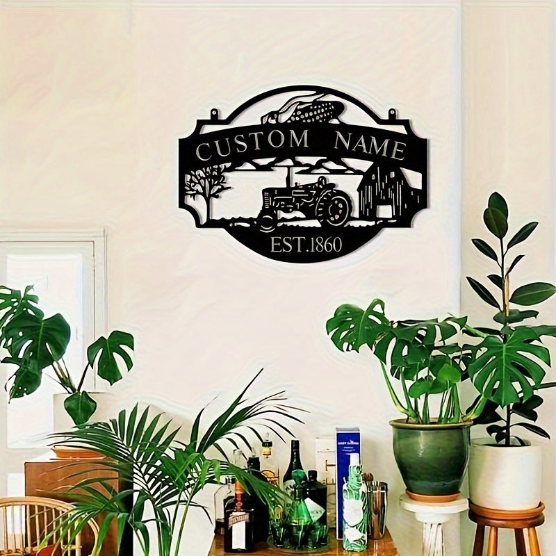 Rustik Ferma Metall Devori San'ati - Moslashtiriladigan Qora Qoplama bilan - Shukrona Bayrami Dekoratsiyasi va Hikoya Mavzusi uchun Shaxsiylashtirilgan Oila Ismi Plaketi, Batareyalar Kerak Emas - Ideal Sovg'a Variant