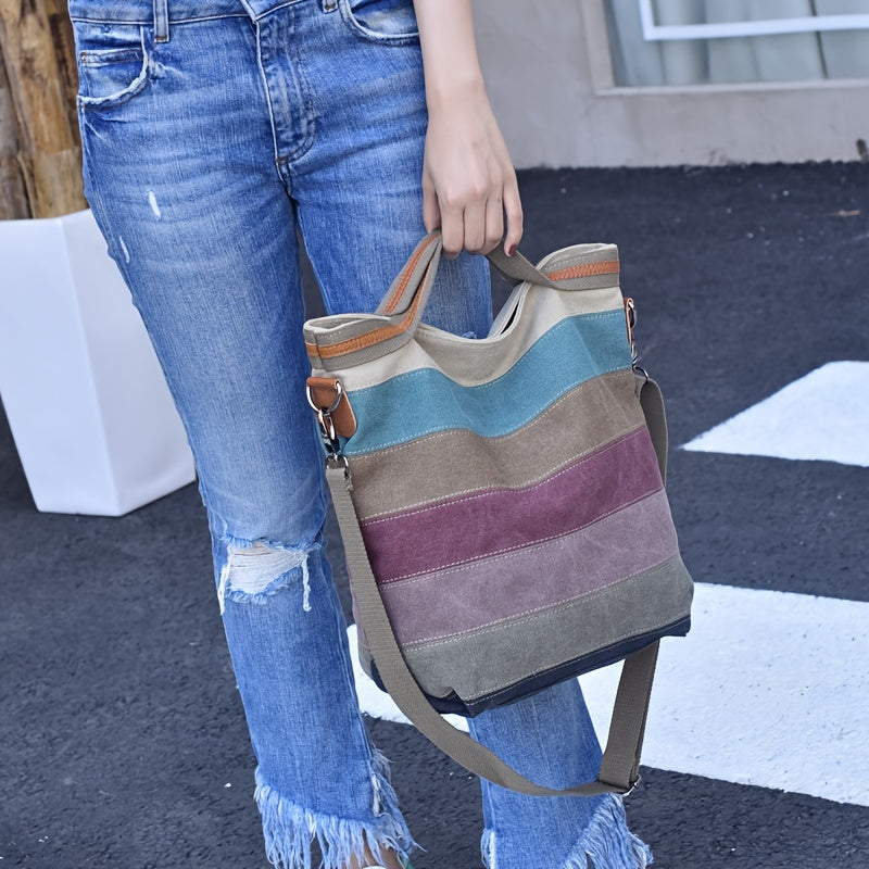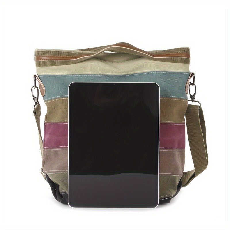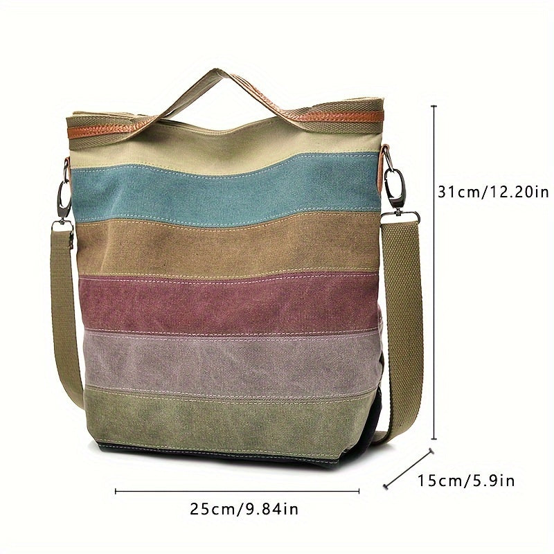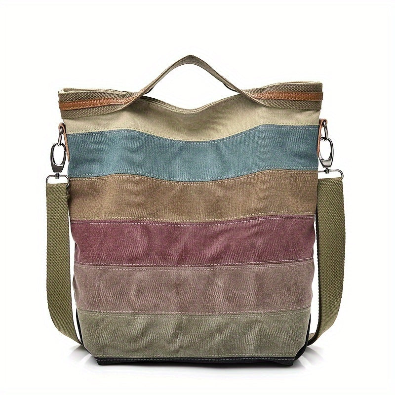 RUYIHUANG Ayollar uchun Tasodifiy Tashish Sumkasi: Katta Hajm, Ko'p Bo'limli, Ajraladigan Yelka Tasmasi bilan Rangli Dizayn, Bej va Ko'k-Yashil Chiziqli Nizom, Har Kunlik Foydalanish