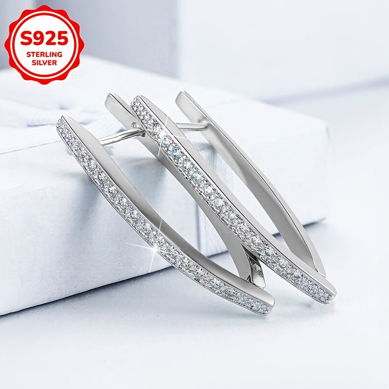 S925 kumush geometrik jihatdan notekis uchburchak quloq bilaguzuk, bitta qator zirkoni toshlar bilan bezatilgan. Ushbu hashamatli va zamonaviy buyum qimmatbaho toshlar bilan bezatilgan bo'lib, har qanday kiyimga nafislik qo'shadi.
