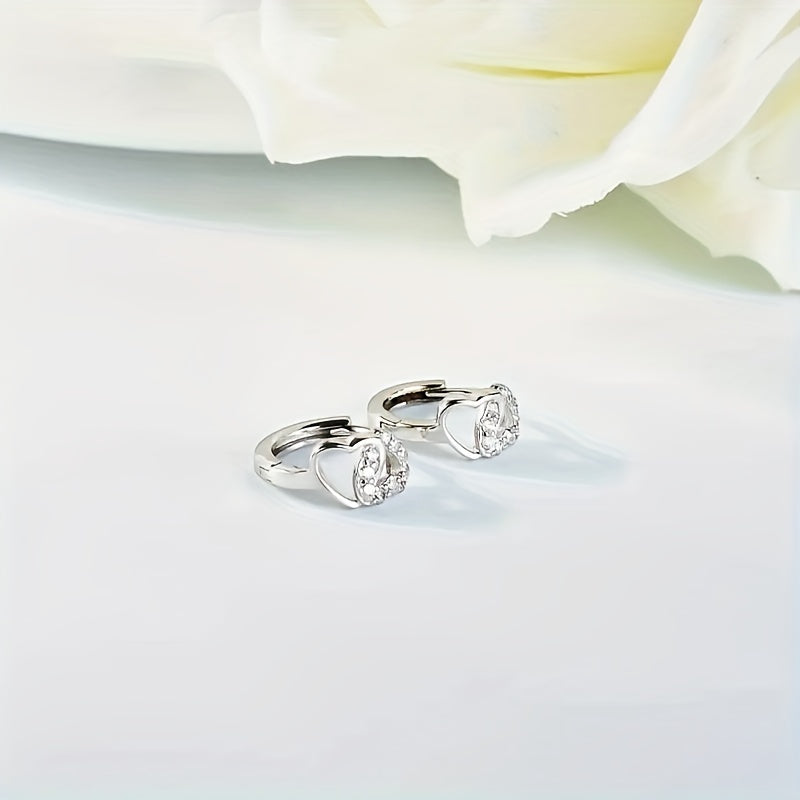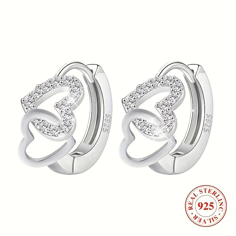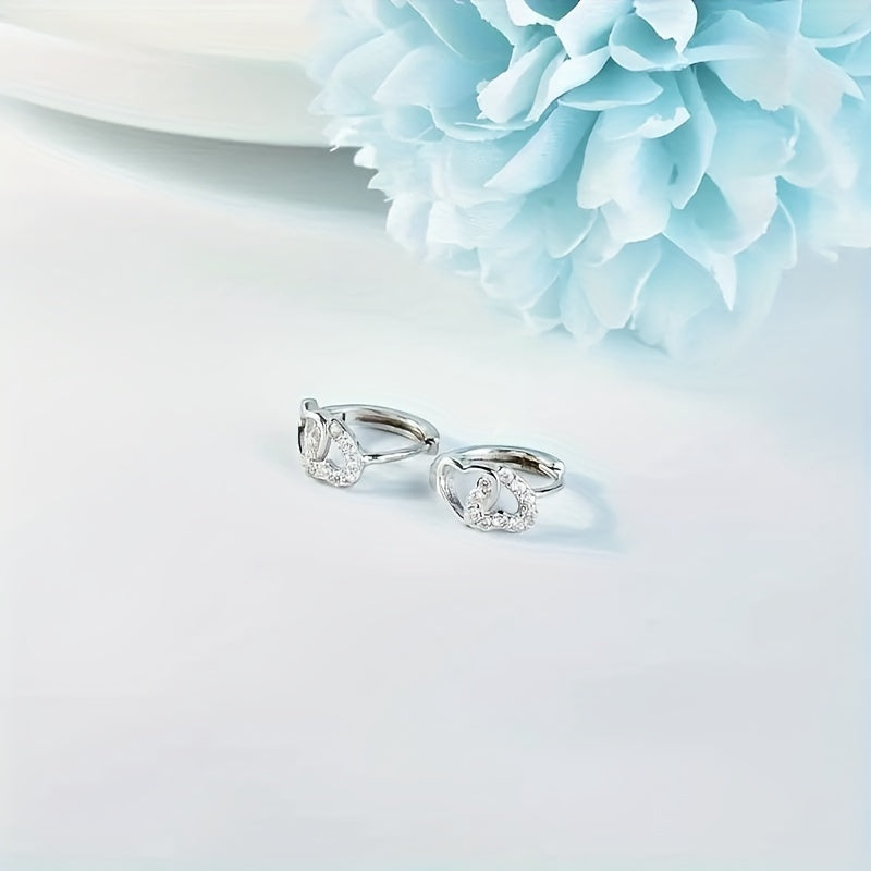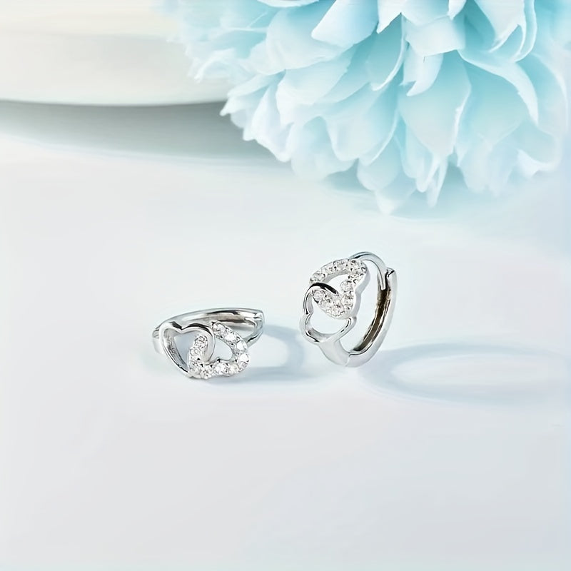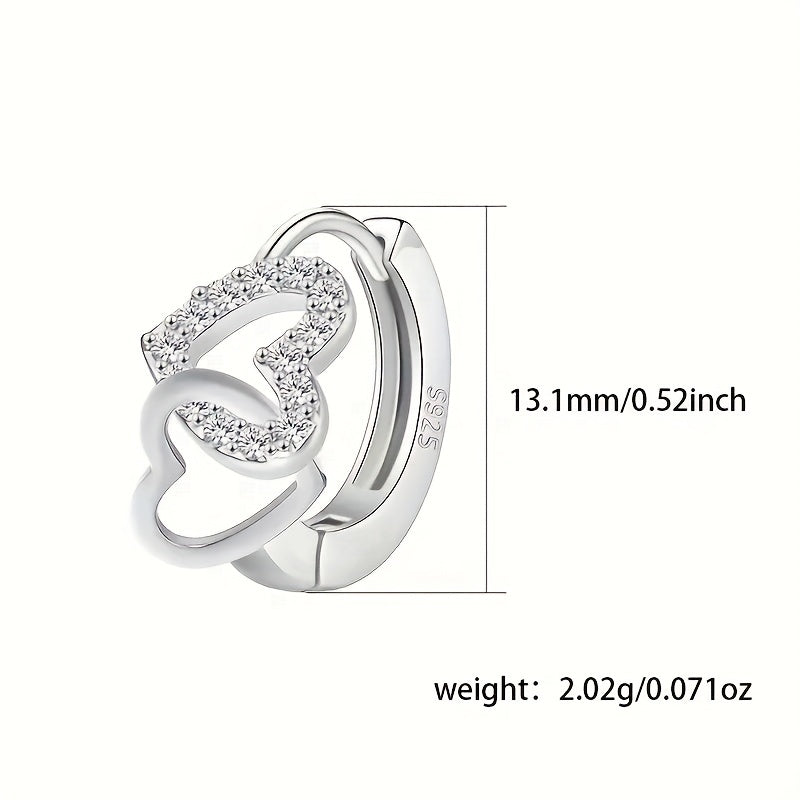 S925 Silver Gippoallergenik Ikki Bo'sh Sevgi Dizayni Halqa Sirg'alar, Zirconia Bezaklari Bilan Nafis va Hashamatli Usul, Sanalar Tungi Uchun Mukammal
