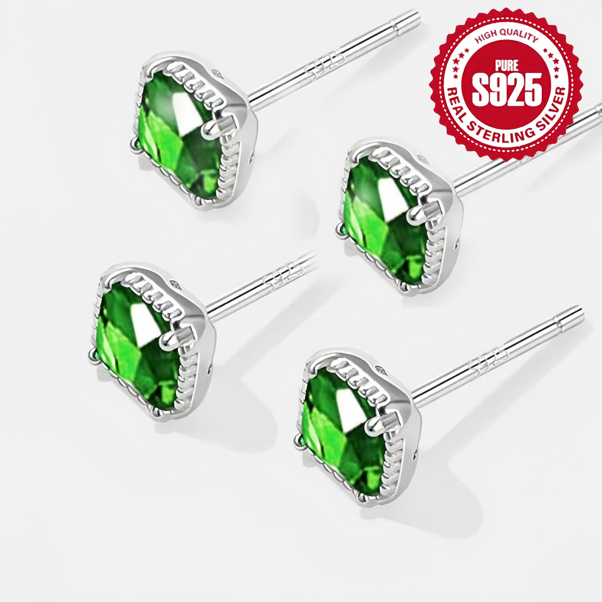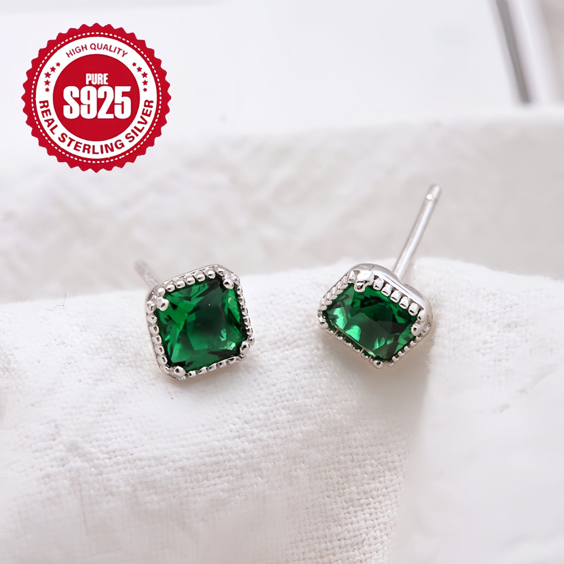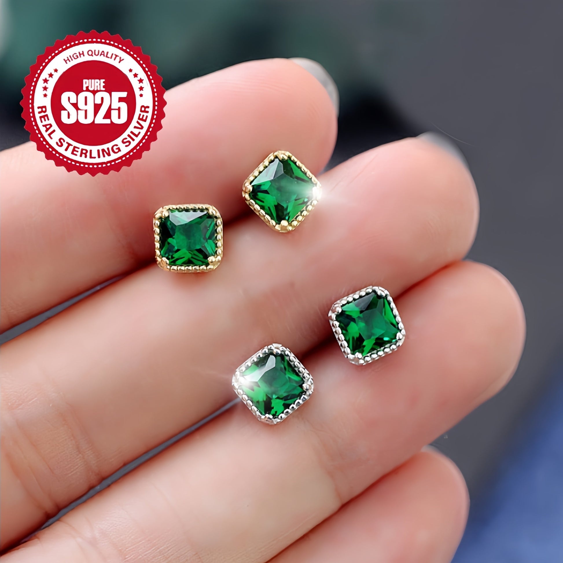 S925 Kumush Kvadratli Momoqlar, Yashil Zirconiya bilan, Onalar Kuni uchun, Vintage Bobo-ona Uslubi, Har Juft uchun 1.4g yengil, Gipoallergen