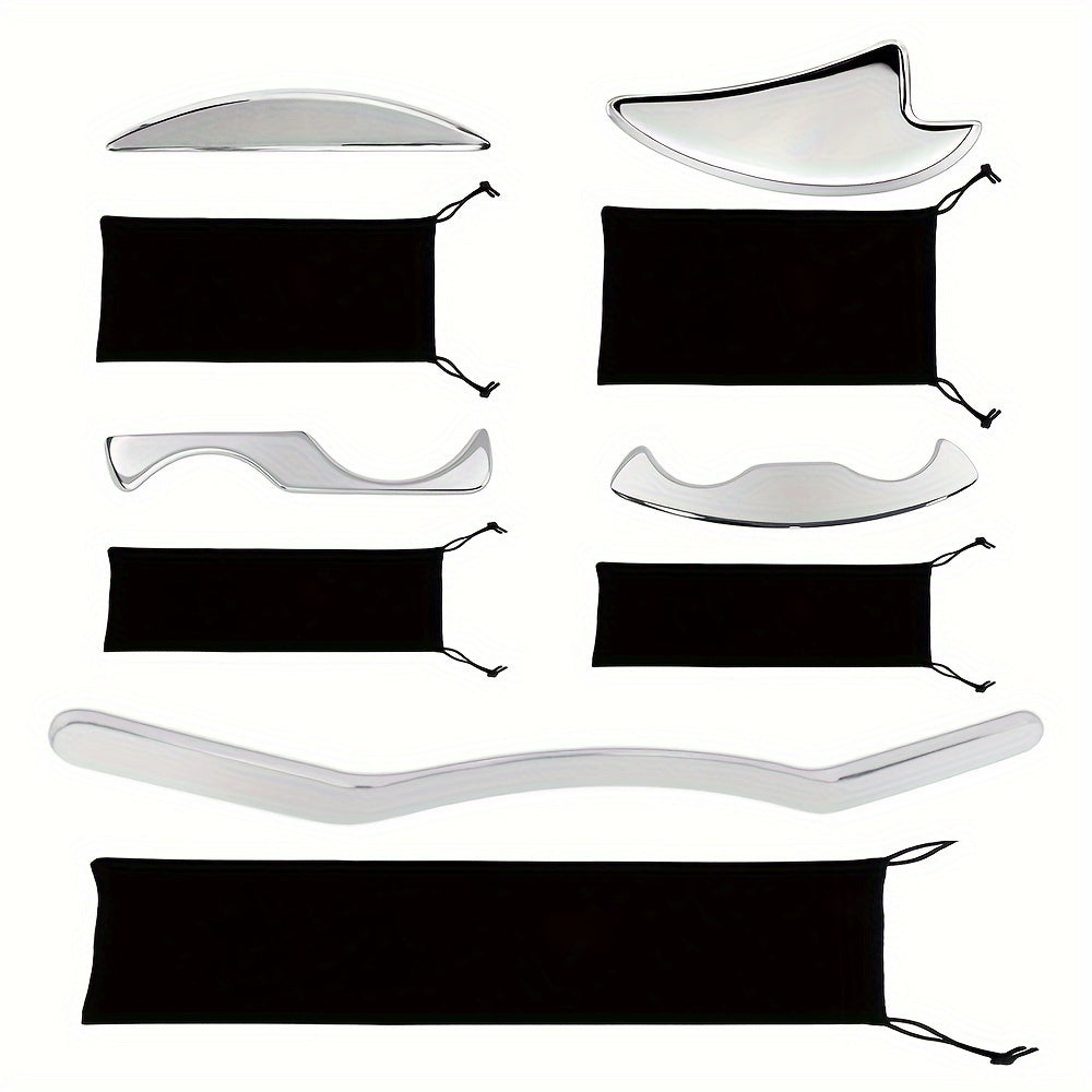 SALORIE 5 dona zanglamas po'latdan Gua Sha massaj to'plami orqa, oyoq, qo'l, bo'yin va yelkalarga mo'ljallangan sayohat sumkasi bilan