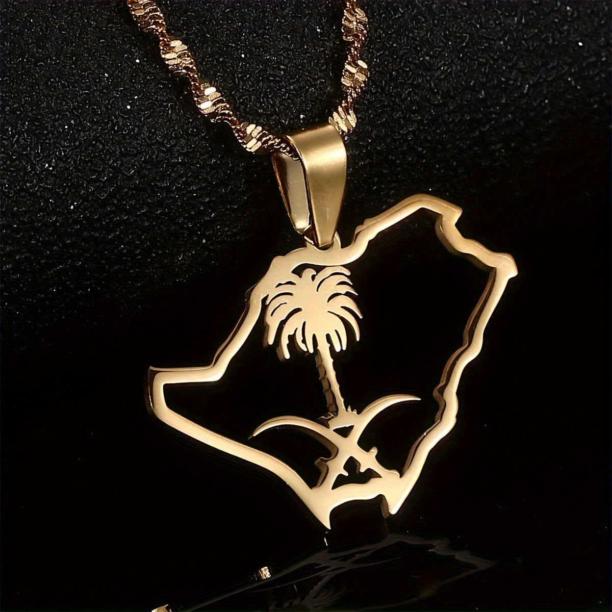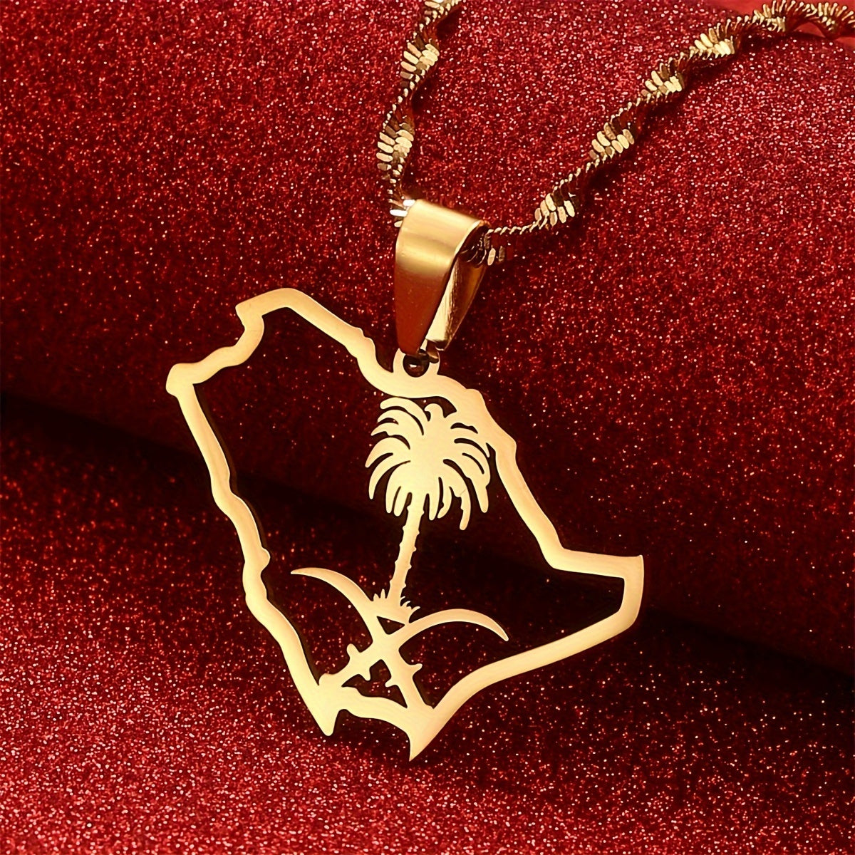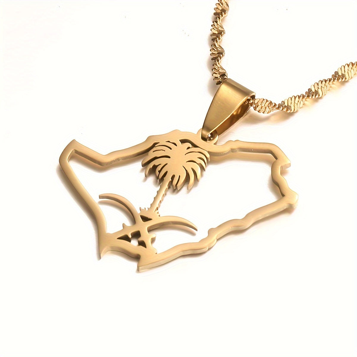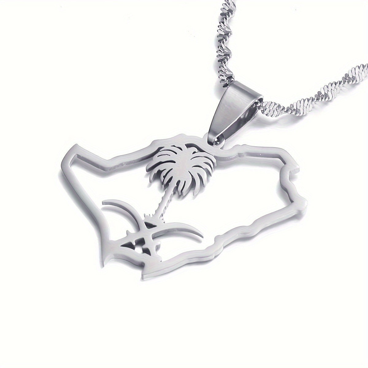 "Saudi Emblem" zanglamas po'latdan yasalgan ayollar uchun pandantli marjon, qabilaviy oddiy uslubda - kundalik kiyim va partiyalar uchun mukammal, barcha mavsumlar uchun mo'ljallangan zargarlik, mozaika dizayni yo'q.