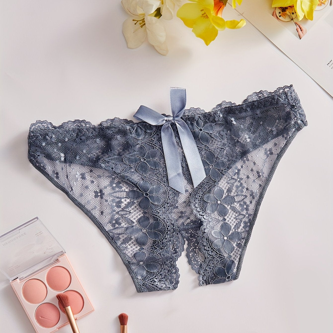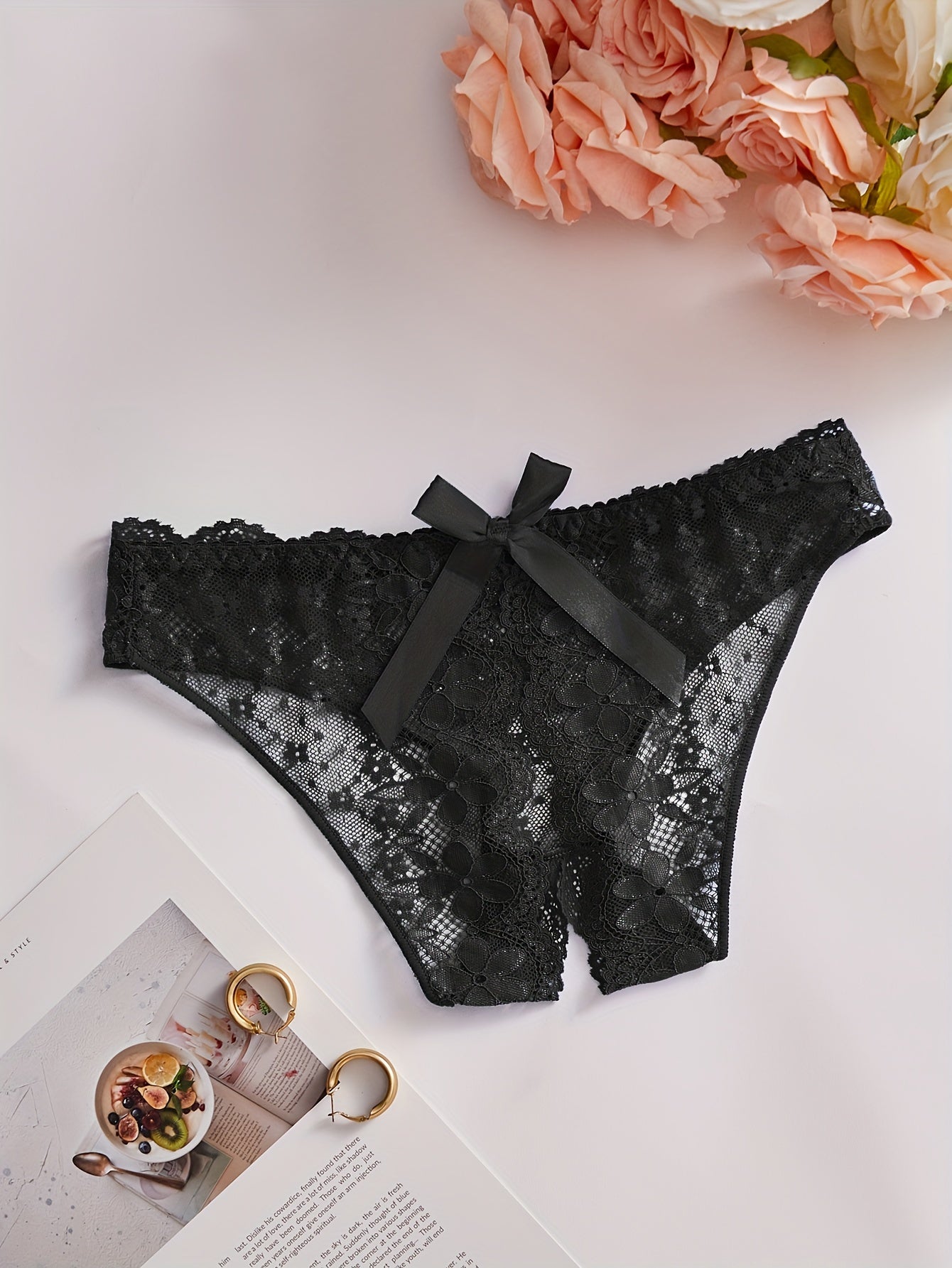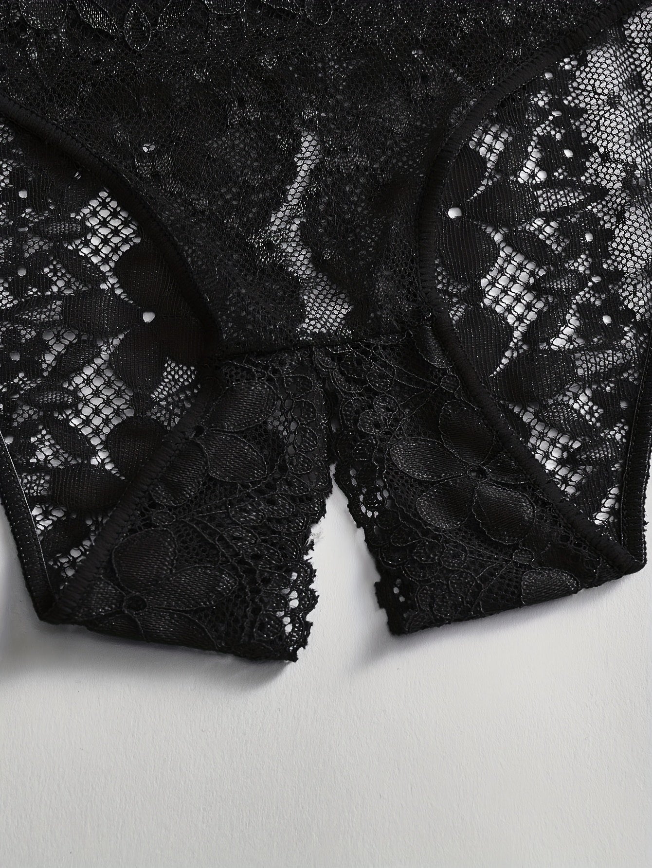 Ayollar uchun sexy ichki kiyim - ko'rinadigan dantelli, qorin qismisiz shortiklar.