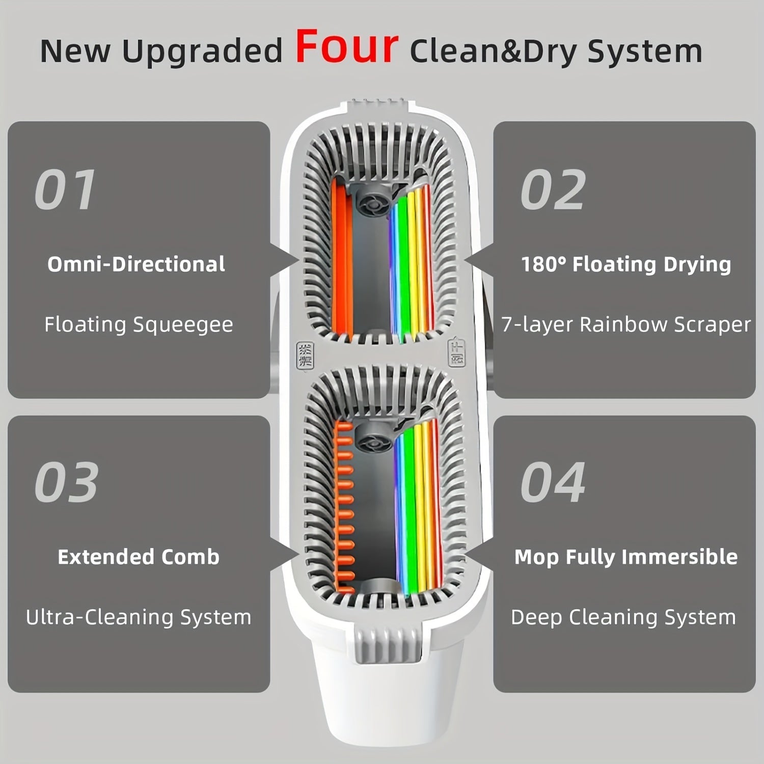 Joybos tomonidan o'z-o'zini tozalovchi tekis mopu tizimi - uy va ofis uchun chelak va mikrofiber pad bilan birga, turli joylar uchun mukammal, masalan, yashash xonasi, yotoqxona, hammom, oshxona va tashqi yuzalar (plastikdan tayyorlangan)