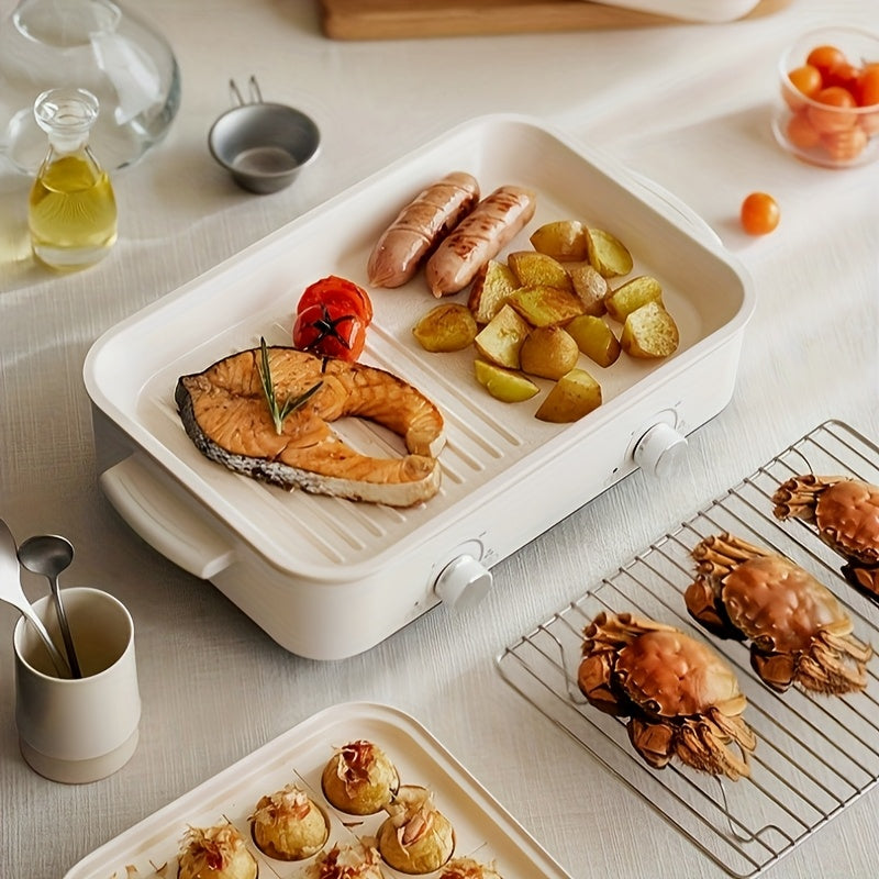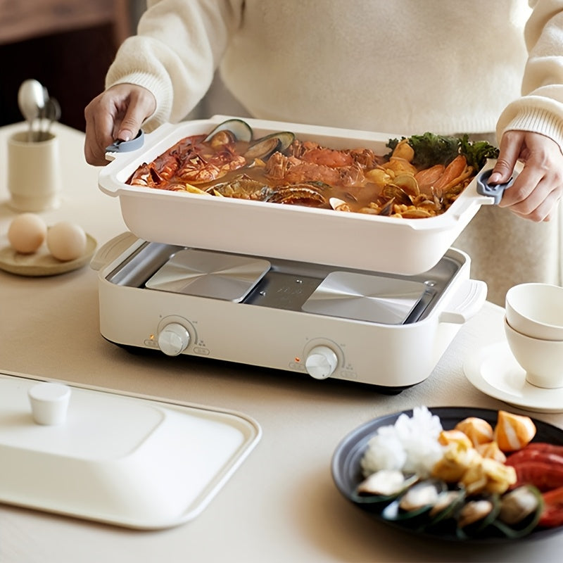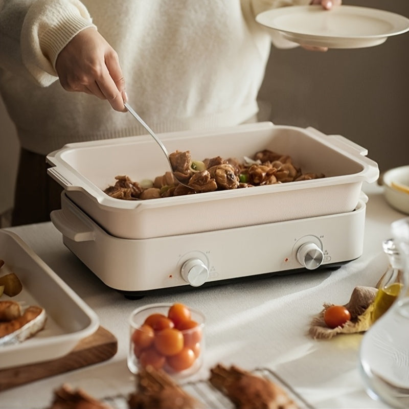 Elektr hot poti 2-zonal mustaqil harorat nazorati va Yevropa standarti rozetkasi bilan, 220-240V quvvat manbai, oson tozalash uchun ajraladigan.