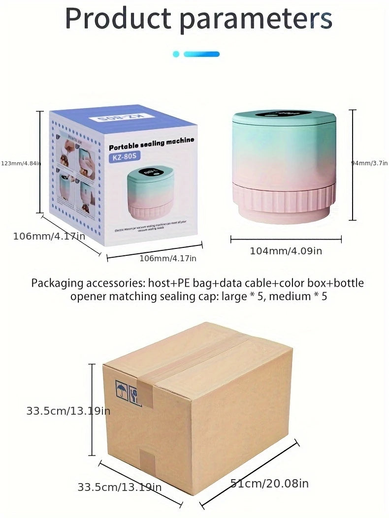 USB orqali qayta zaryadlanadigan batareyaga ega Elektrik Mason Jar Vacuum Sealer Kiti.