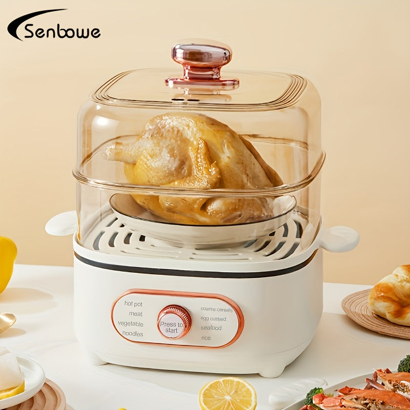 EU plug ikki qatlamli elektr taom bug'laydigan qurilma tez va bir vaqtning o'zida pishirish uchun, 9.5QT ko'p funktsiyali issiq qozon vizual qopqog'lar va to'planadigan savatlari bilan.