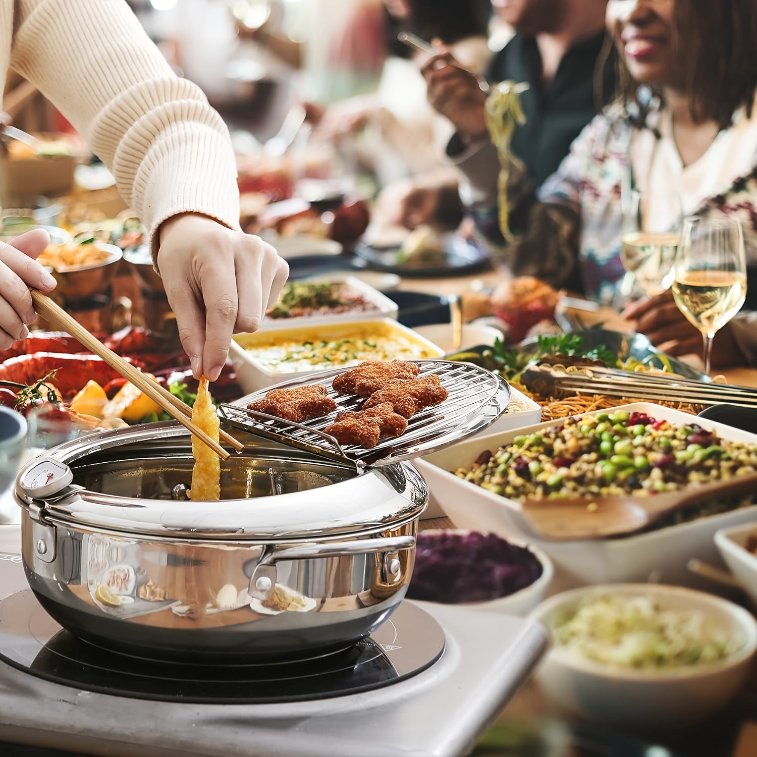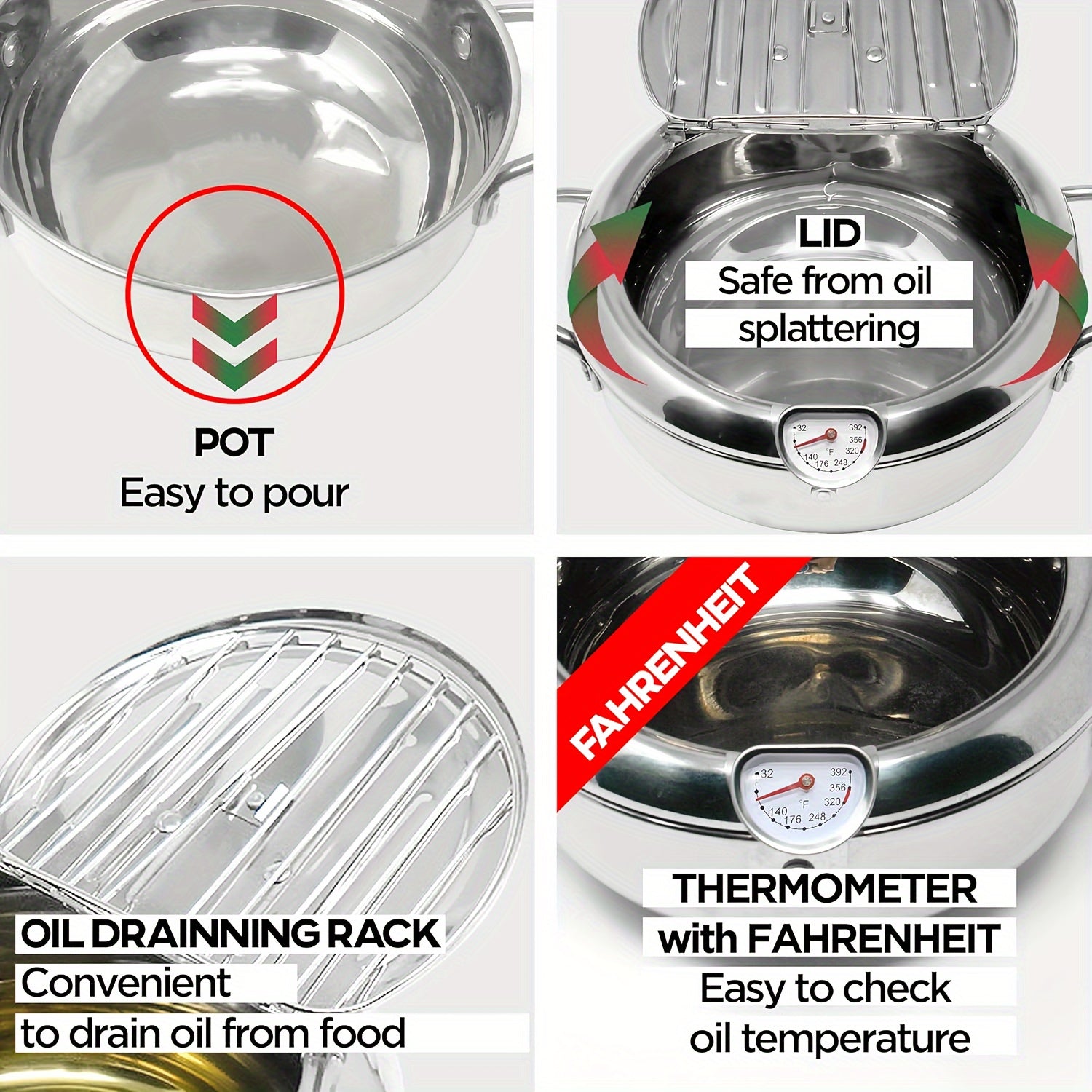 SENBOWE Mini Deep Fryer with Thermometer, 304 Stainless Steel, Tempura, Chips, Fish va Chicken uchun mukammal