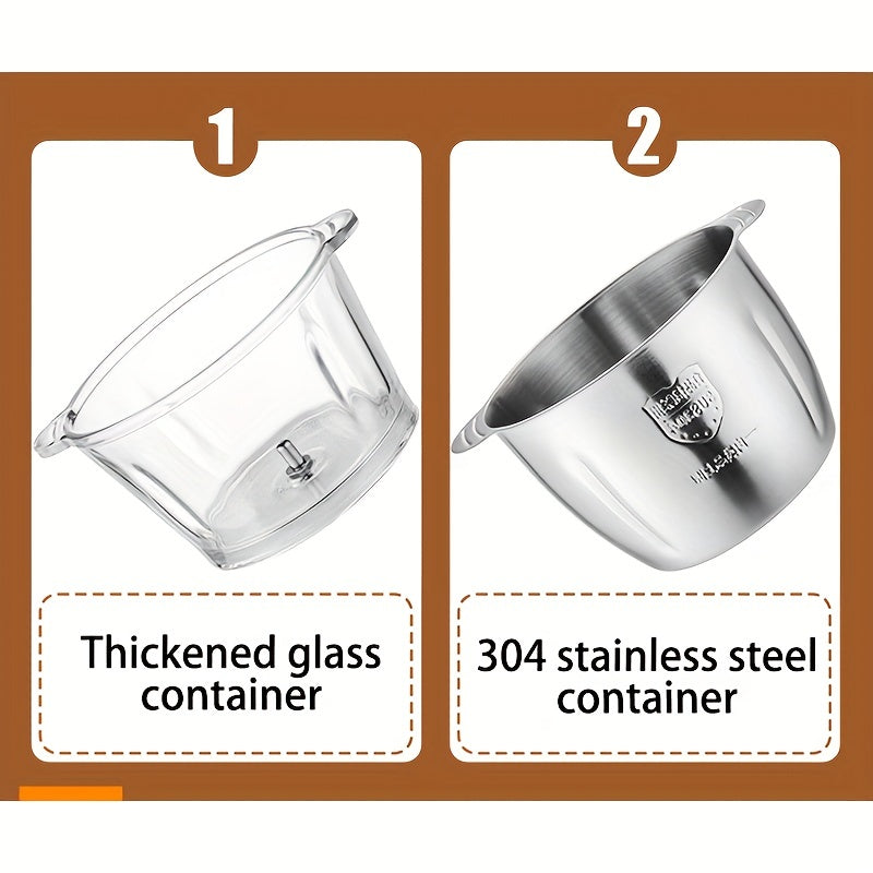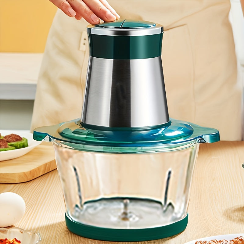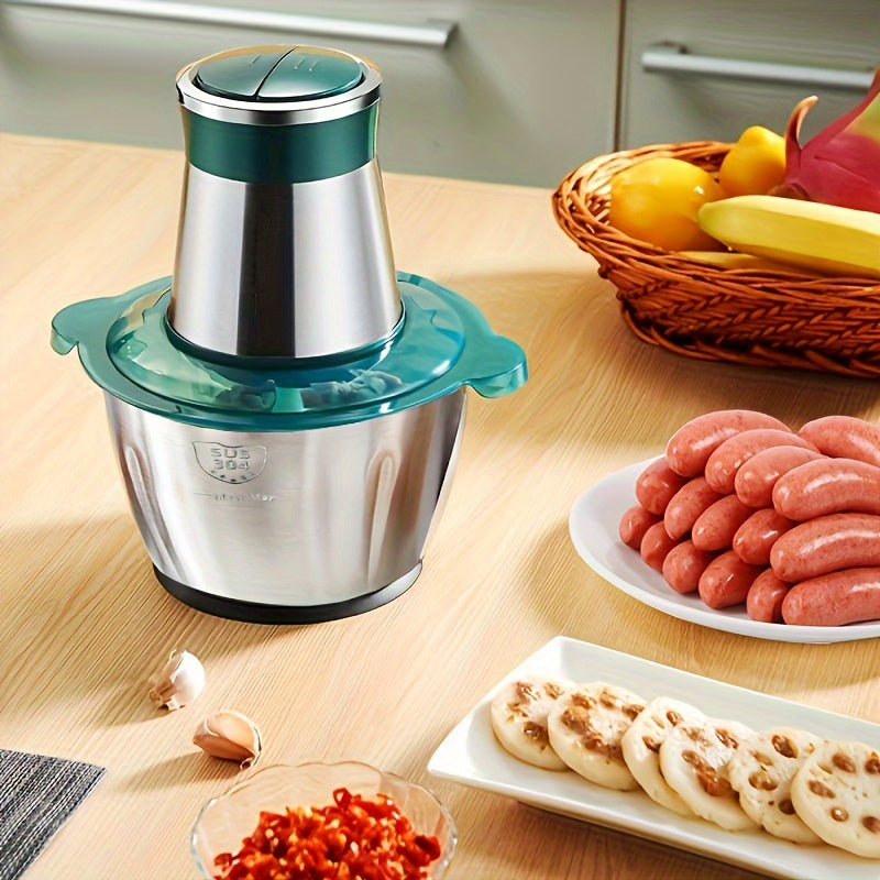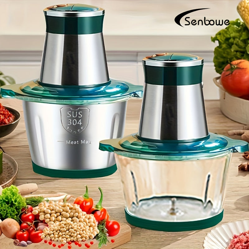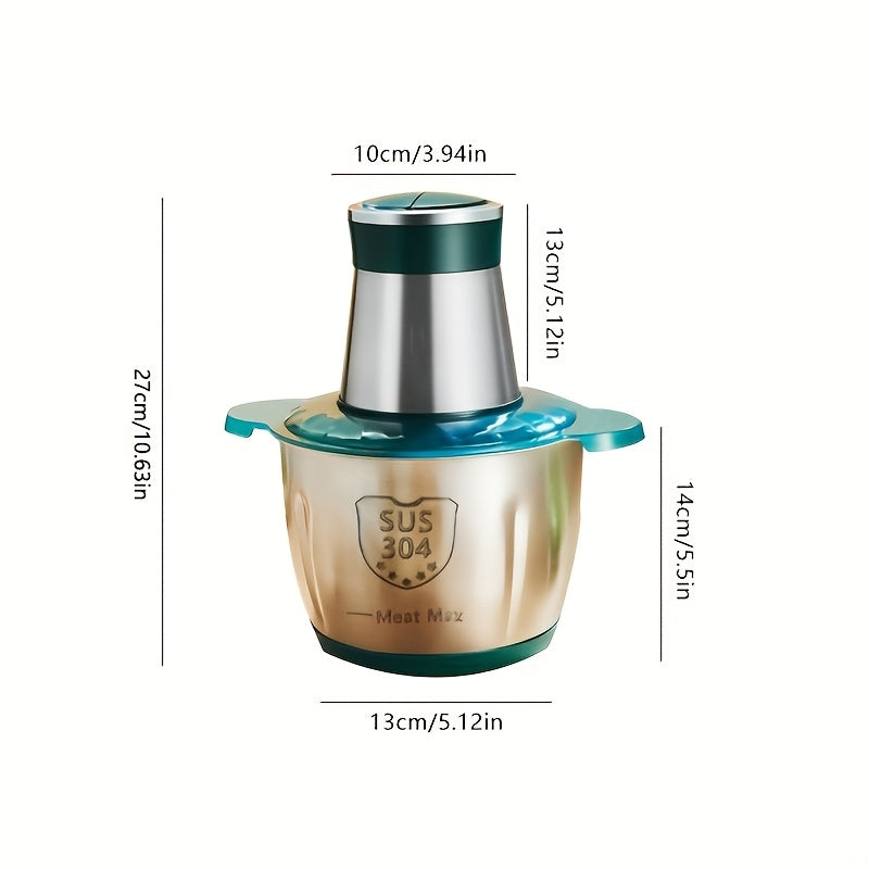 2 tezlik, 4 ta bi-balandlikdagi zanglamaydigan po'latdan yasalgan pichoq bilan kuchli Oziq-ovqat protsessori va go'sht maydalagich, sabzavotlar, piyoz va sarimsoq uchun. Shisha yoki zanglamaydigan po'lat variantlar bilan EU rozetkasi mavjud.