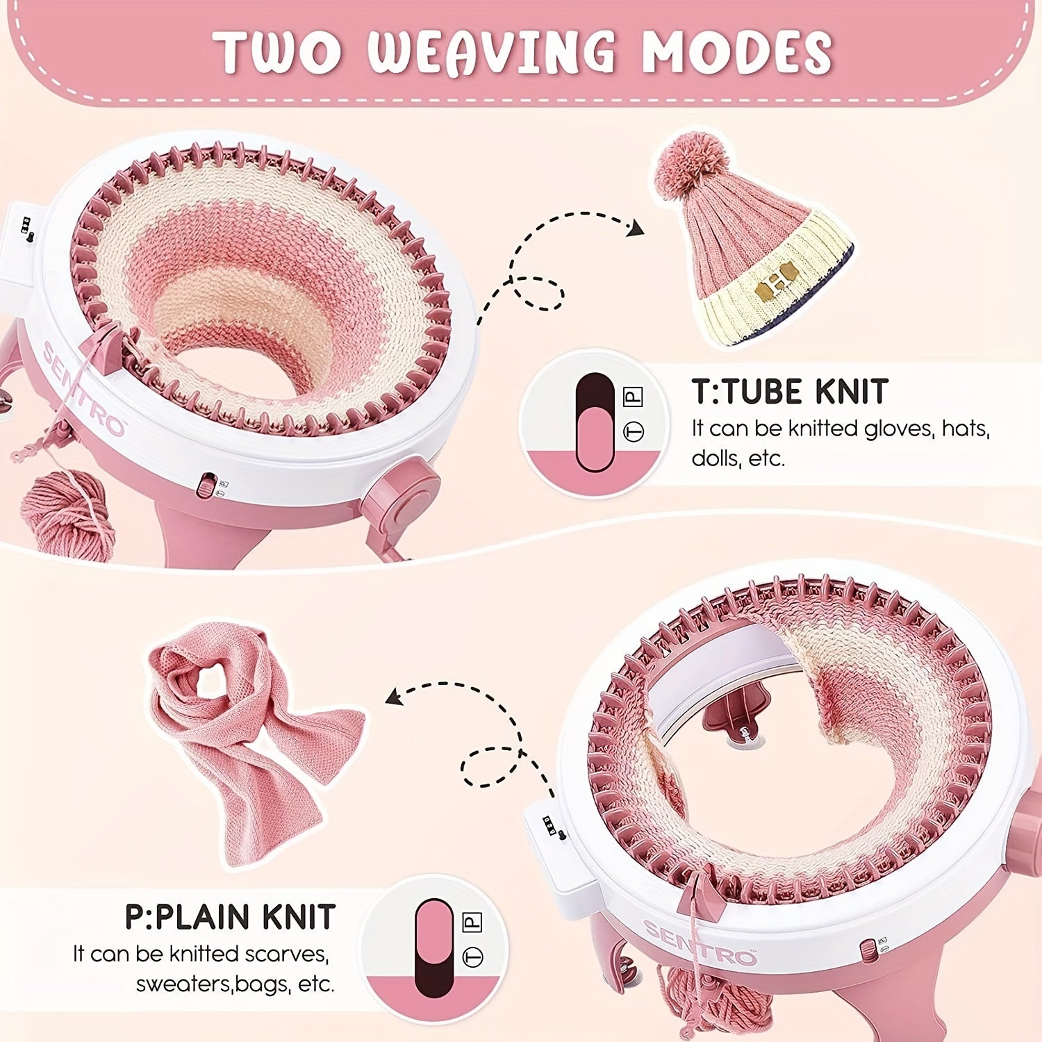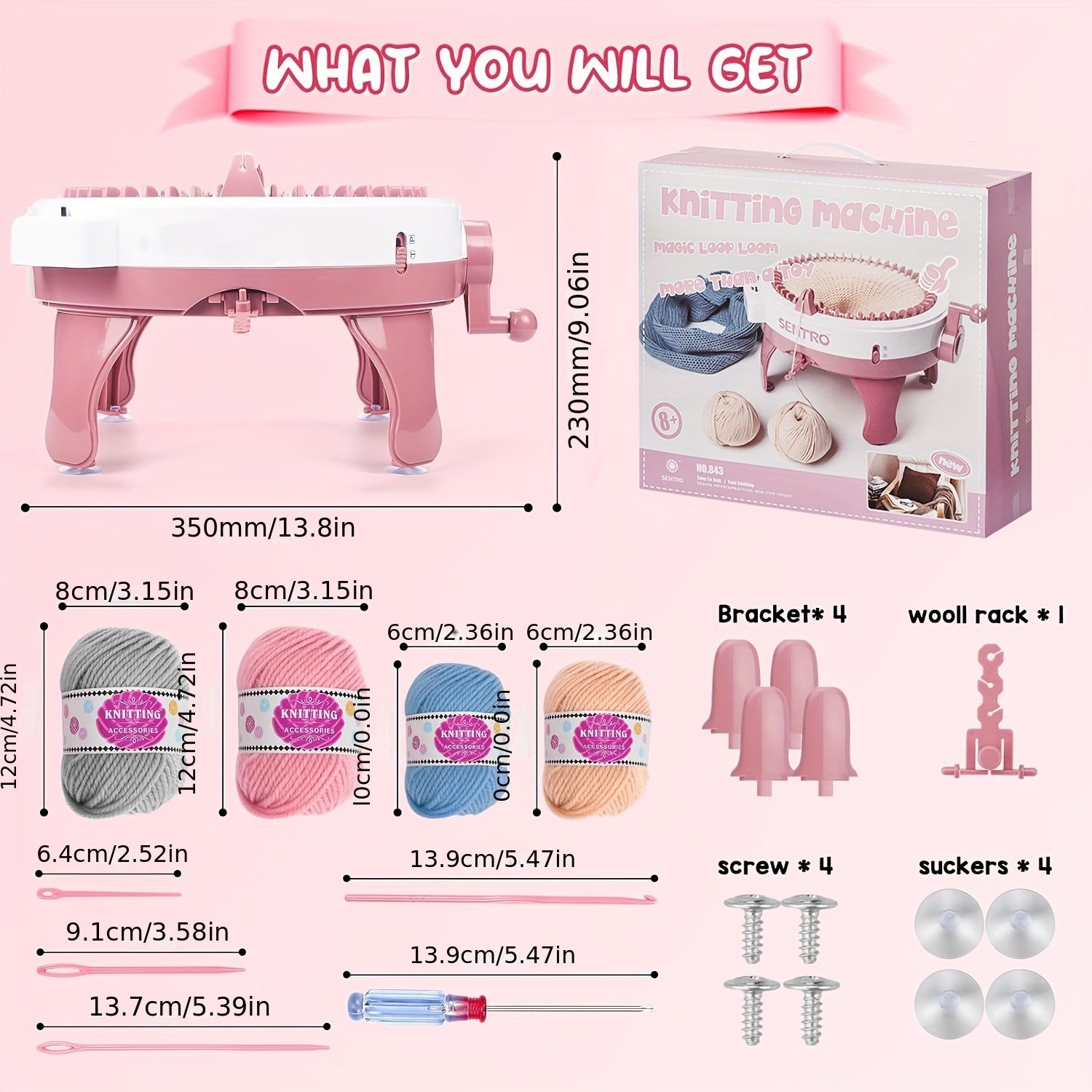 Yoshlar va boshlovchilar uchun 48 ignli to'qish mashinasi to'plami, turadigan joy bilan, pushti