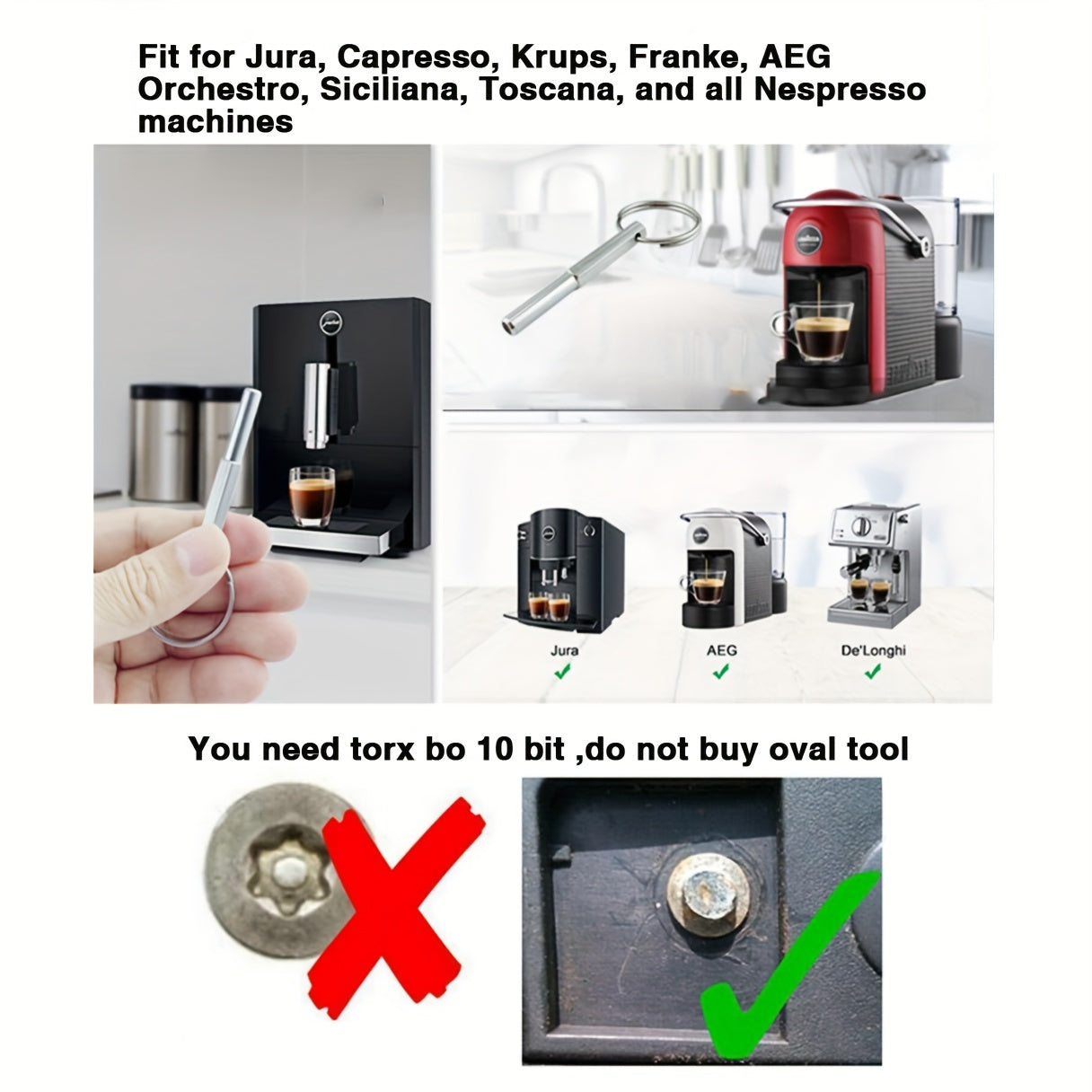 Kofe mashinasini ta'mirlash xizmati, Oval bosh vintlar uchun xavfsizlik asbobi kaliti bilan