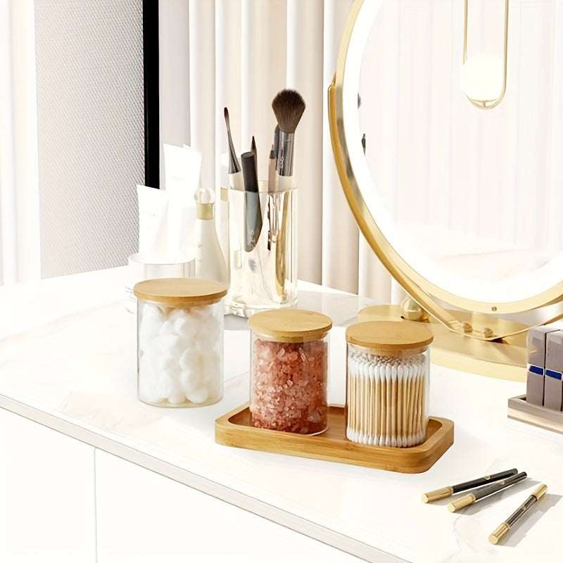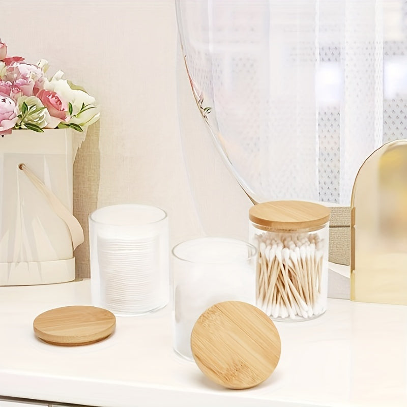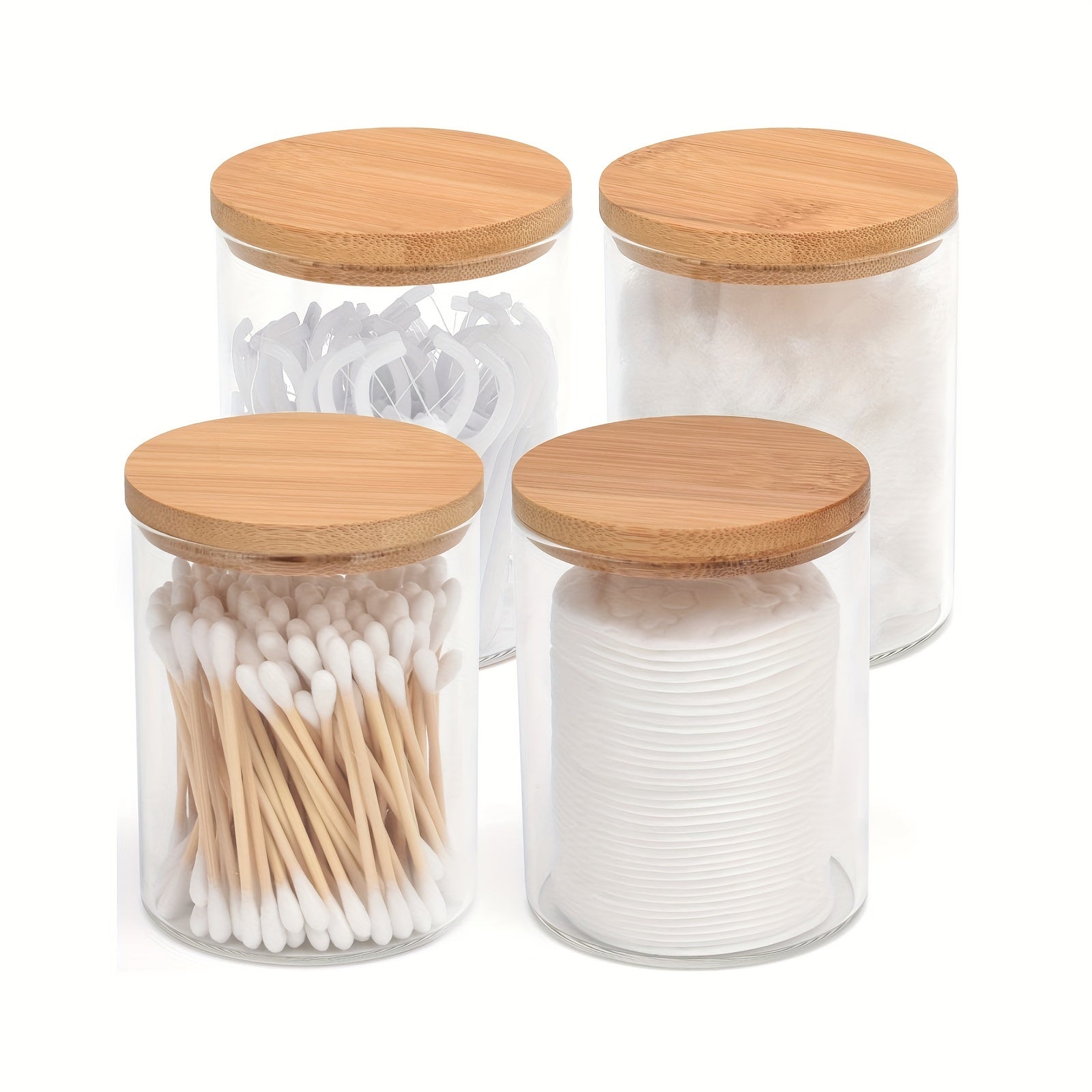 1/2/3/4 ta Akril Qopqoq Dispenserlar, Hammom Aksessuarlarini Saqlash uchun Bambuk Qopqoq bilan. Ferma yoki Boho Hammom Dekorasi uchun ideal.
