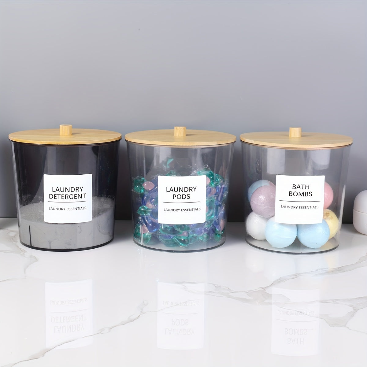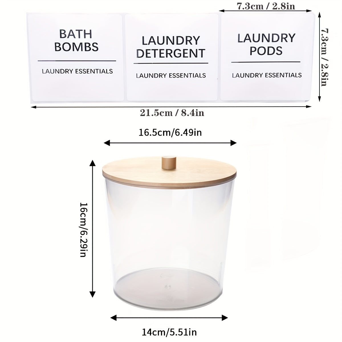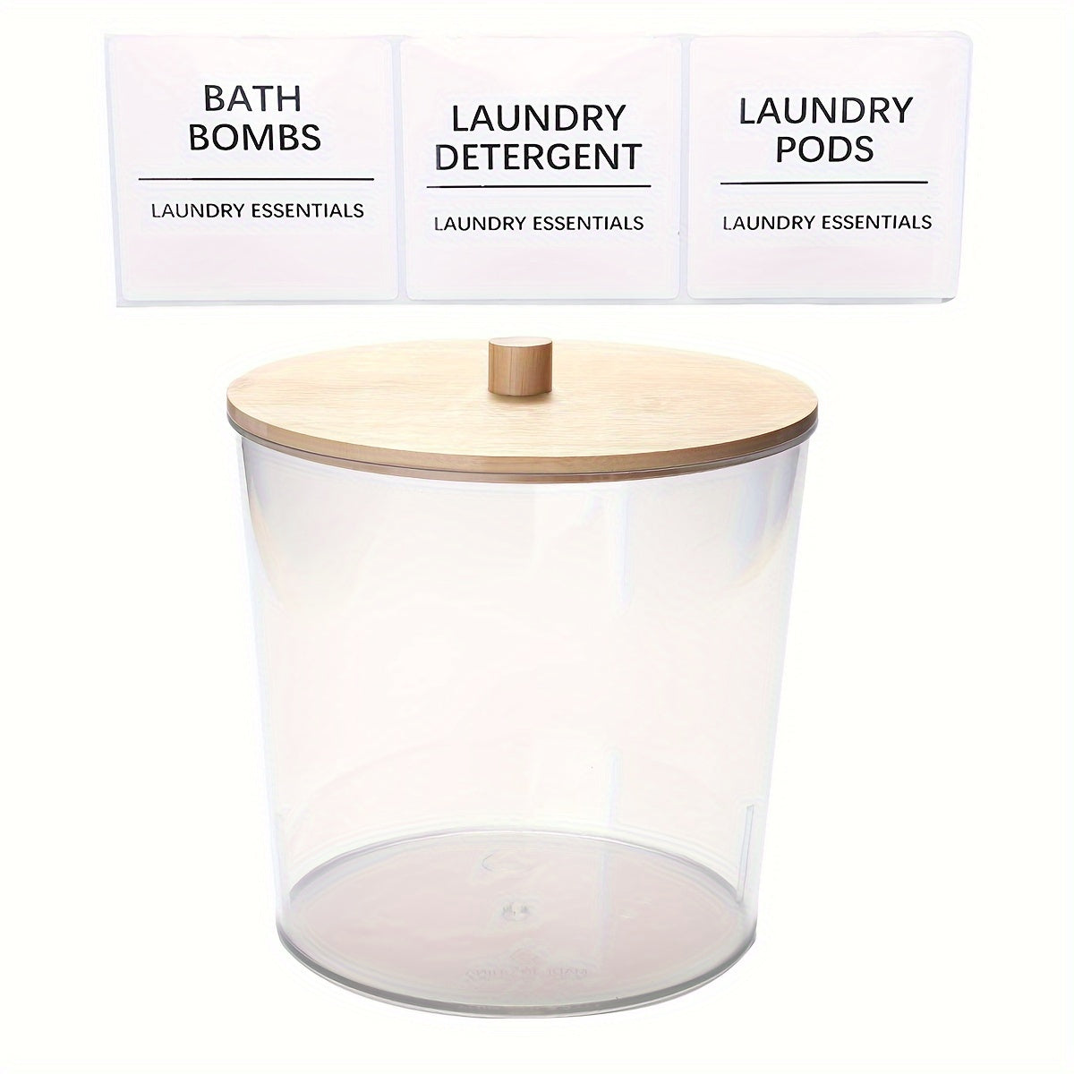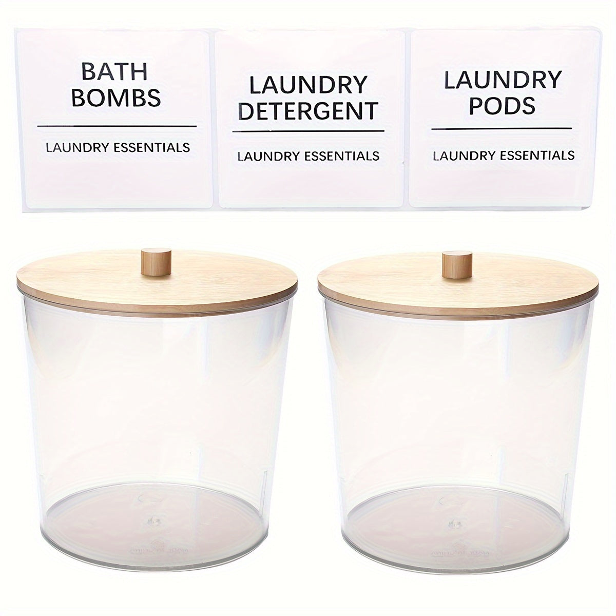 1 yoki 2 ta katta shaffof kir yuvish konteynerlari to'plami, bambuk qopqoq va yorliqlar bilan plastik tarqatish idishlari, kir yuvish xonasi aksessuarlarini, saqlash va tashkil etish uchun mukammal.