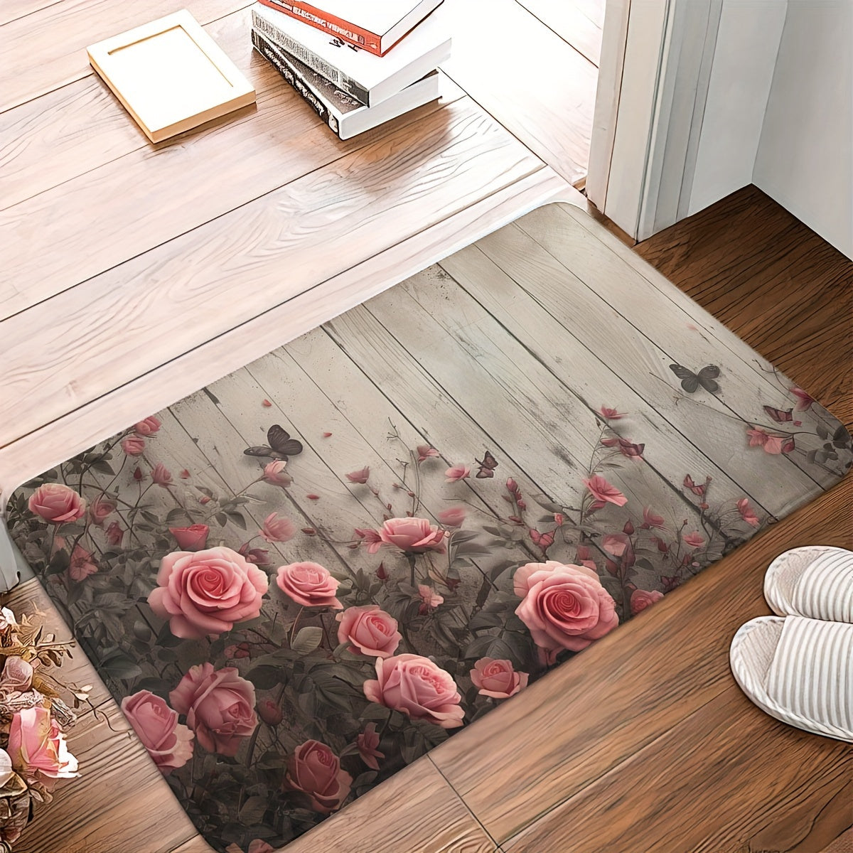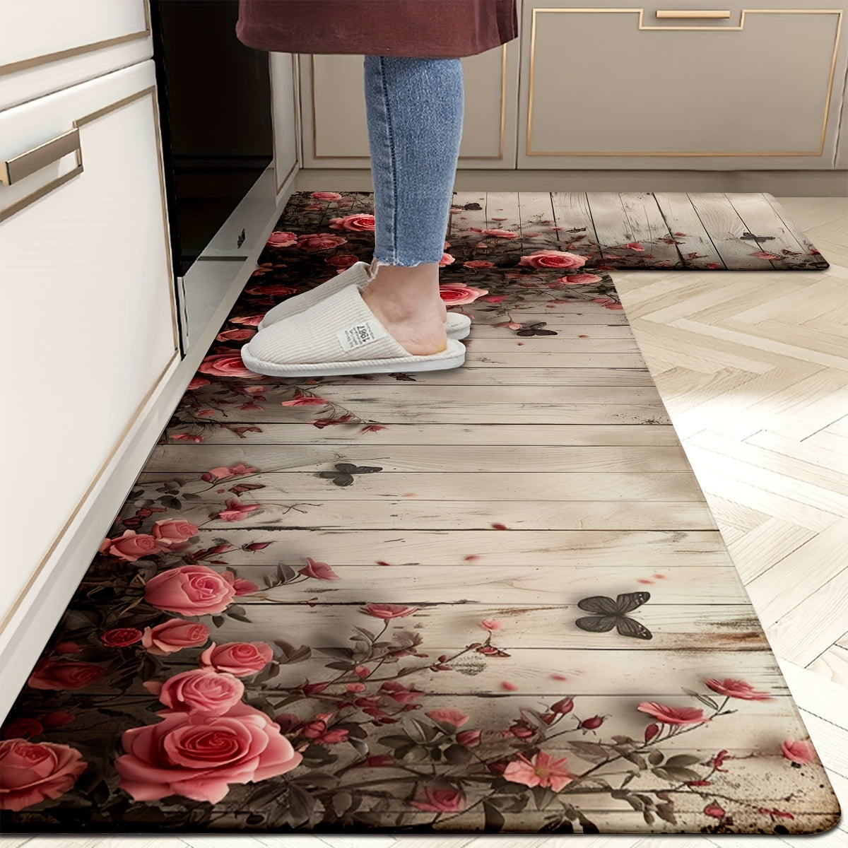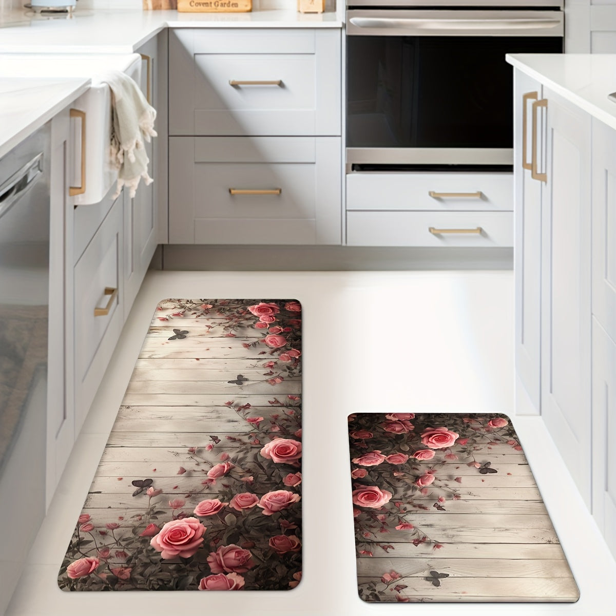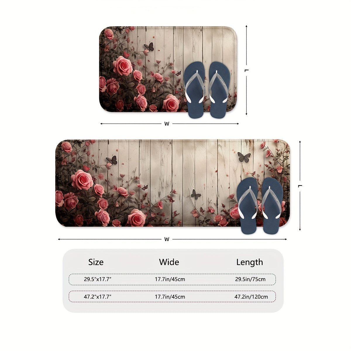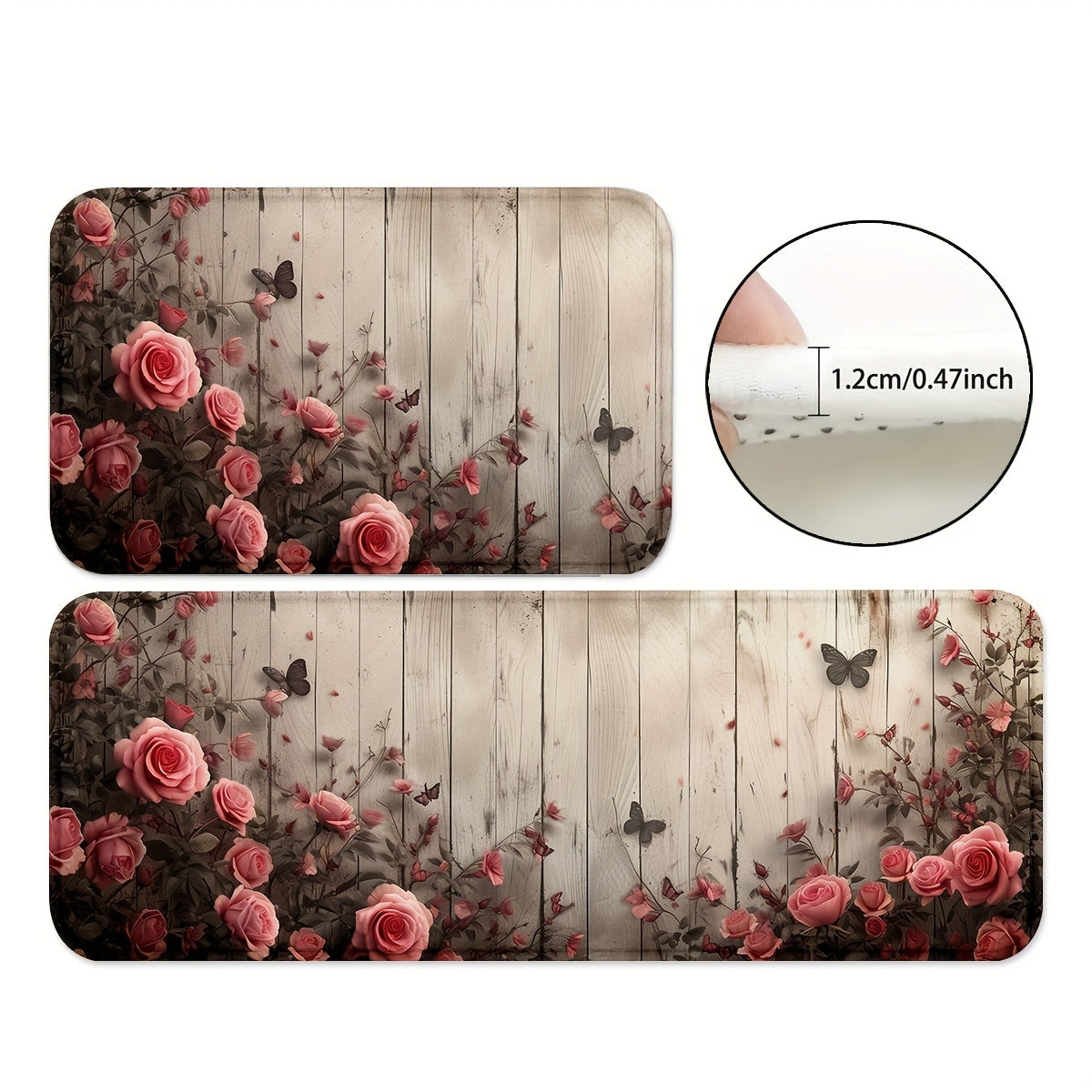 1 yoki 2 ta Atirgul va Yog'och devor naqshli oshxona matolari to'plami, sirpanmaydigan va mustahkam hammom padlari, yumshoq turish uchun yo'llar, oshxona, uy, ofis, kir yuvish xonasi, hammom uchun gilamlar, Bahor bezaklari uchun mukammal