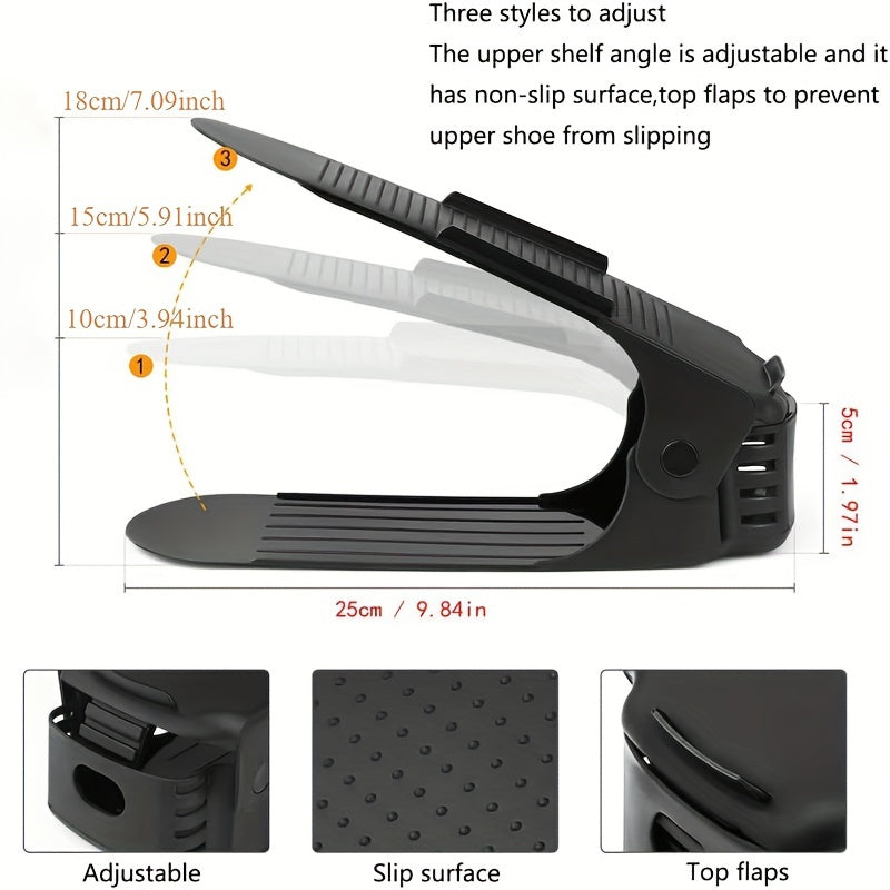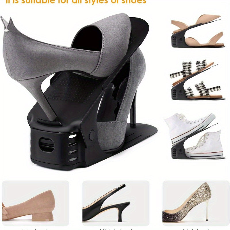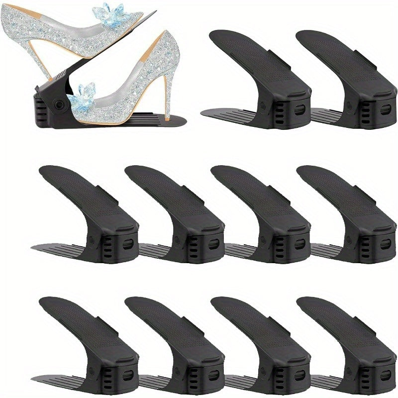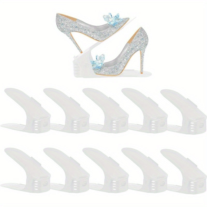 10 ta moslashuvchan poyabzal tashkilotchilari to'plami, turli xil poyabzal turlariga mos keladigan, mustahkam plastikdan yasalgan, shkaf joyini tejash uchun.