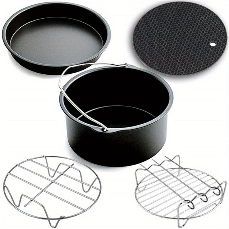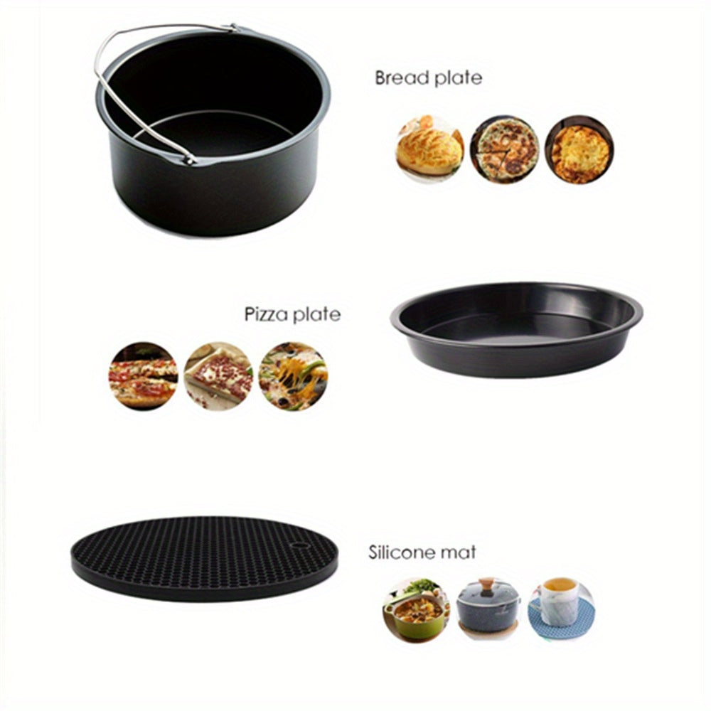 6/7 dyuymli fritözlar uchun 10 ta yuqori sifatli zanglamaydigan po'latdan yasalgan havo fritöz aksessuarlari to'plami. Pishirish korpusi, qavat, bug'li, sabzavot va guruch uchun idishlarni o'z ichiga oladi. 3.2QT-5.8QT fritözlar uchun mos. Oshxona