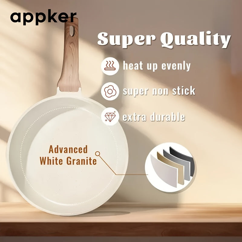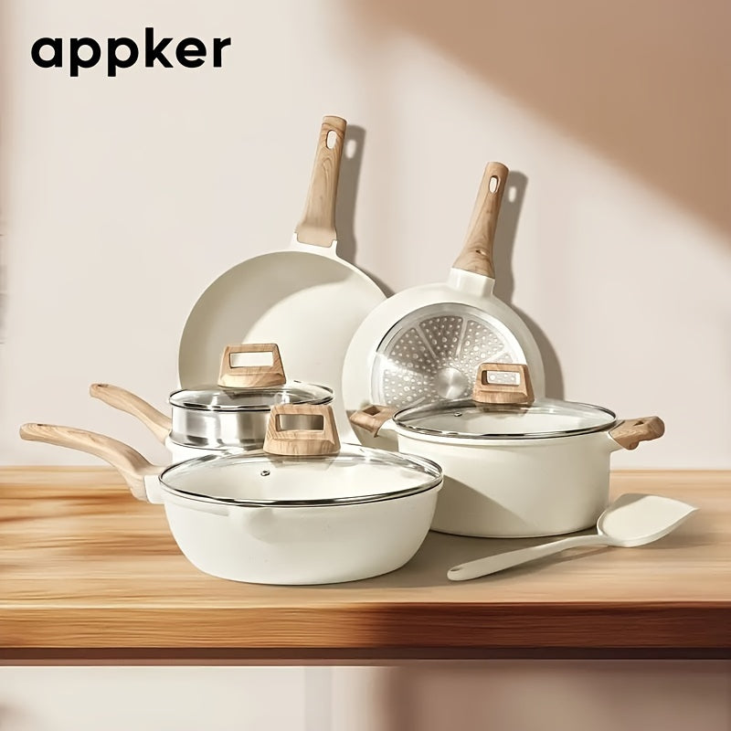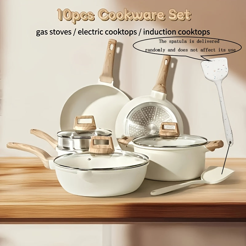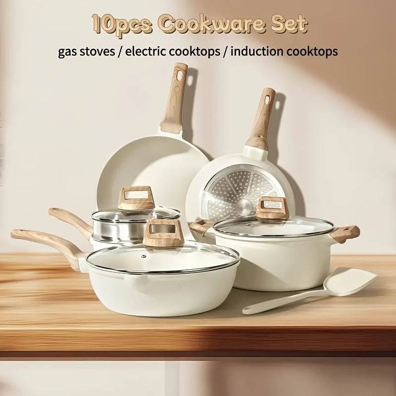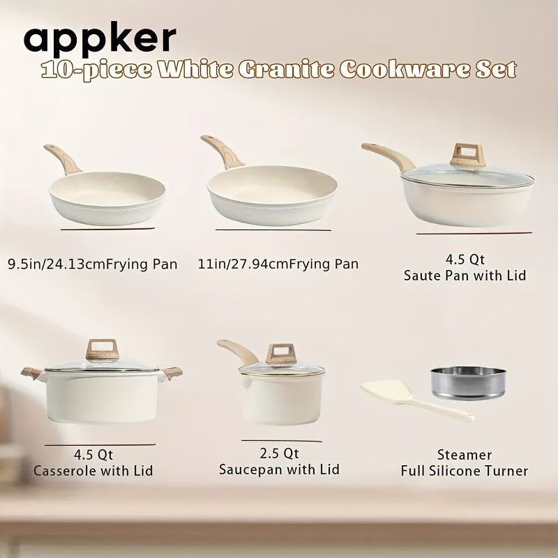 10 ta bo'lakli yopishmaydigan oq granit idishlar to'plami, qovurilgan panjara va qopqog'lar bilan