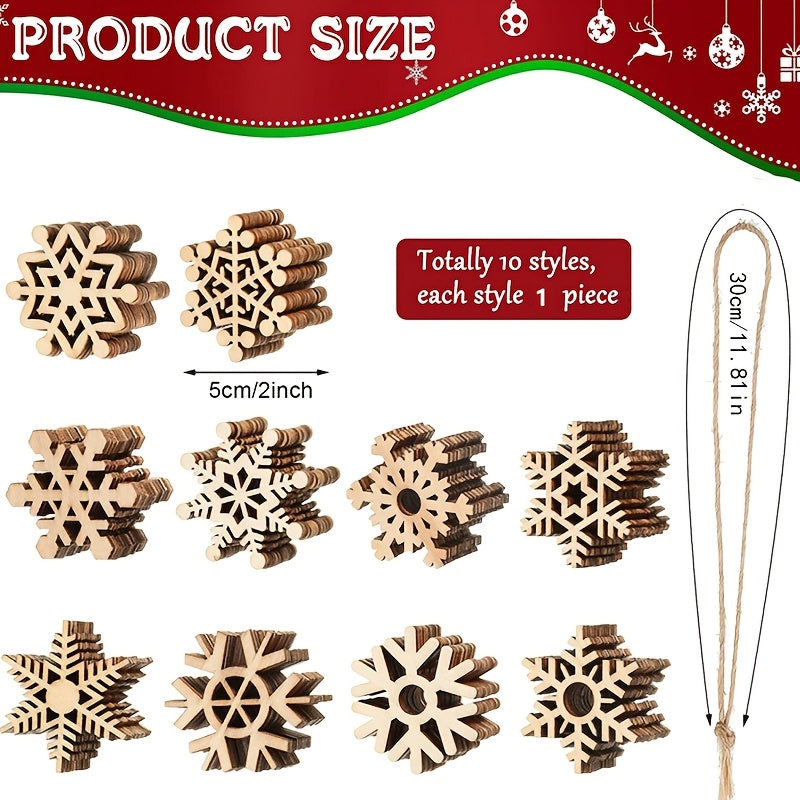 10 ta tugallanmagan yog'och qorniq ornamentlari to'plami DIY Rojdestvo daraxti bezaklari uchun, ip bilan bo'sh dizayn, oila bilan qiziqarli hunar uchun mukammal, 14 yosh va undan katta yoshdagilar uchun tavsiya etiladi, bayram mavsumi uchun ideal.
