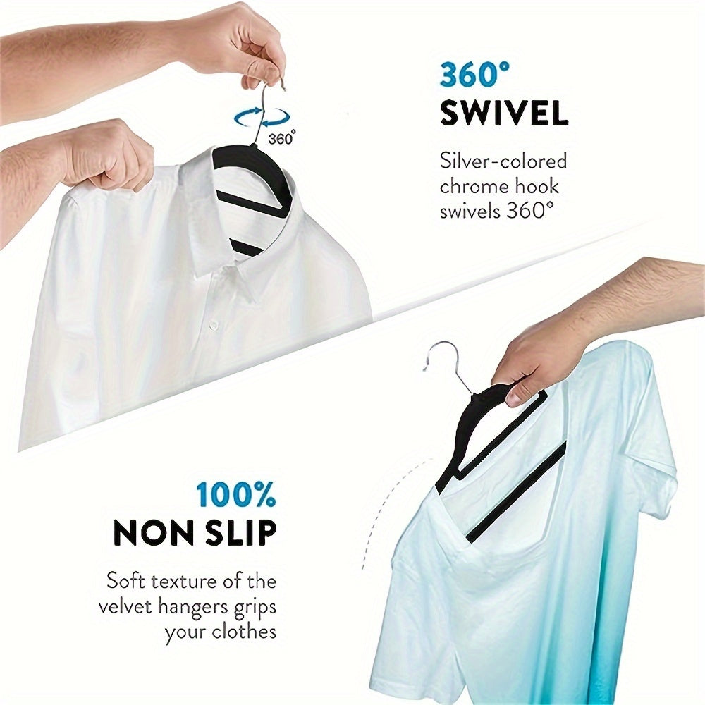10 ta Samt Qoplamali Osma Qulflar To'plami, Sirpanmaydigan Flock Dizayni, 360° Aylanuvchi Qulflar, Qora Rang, Ko'ylaklar, Shimlar va Boshqalar uchun Joyni Tejaydigan Kiyim Tashkiliy Qulflar