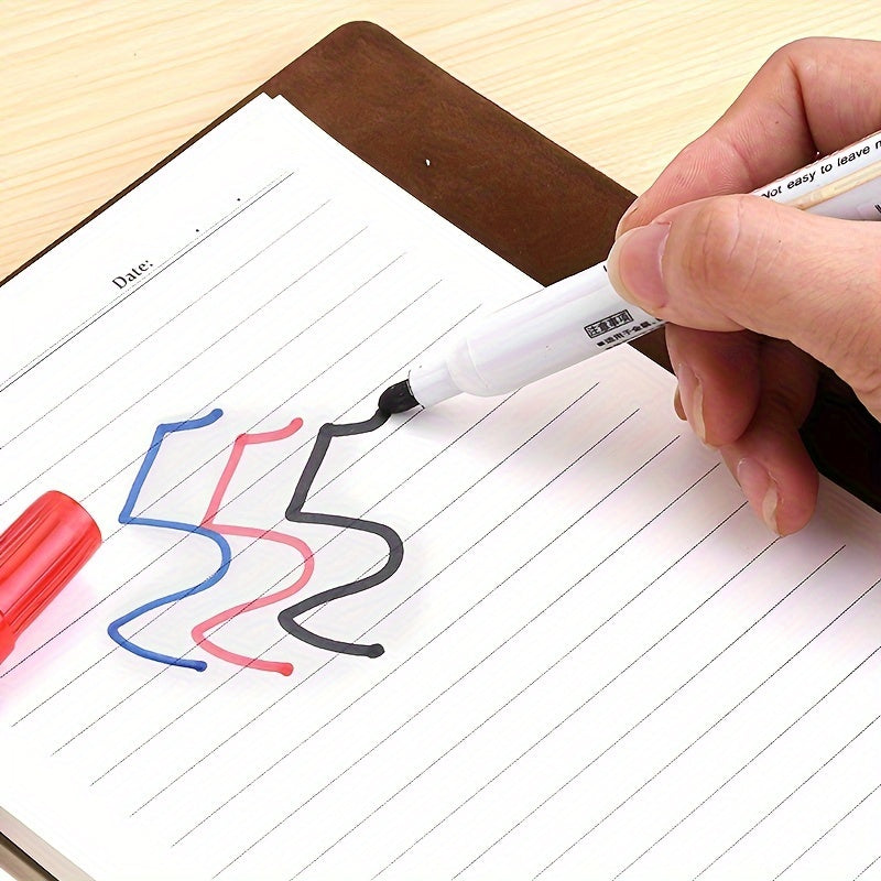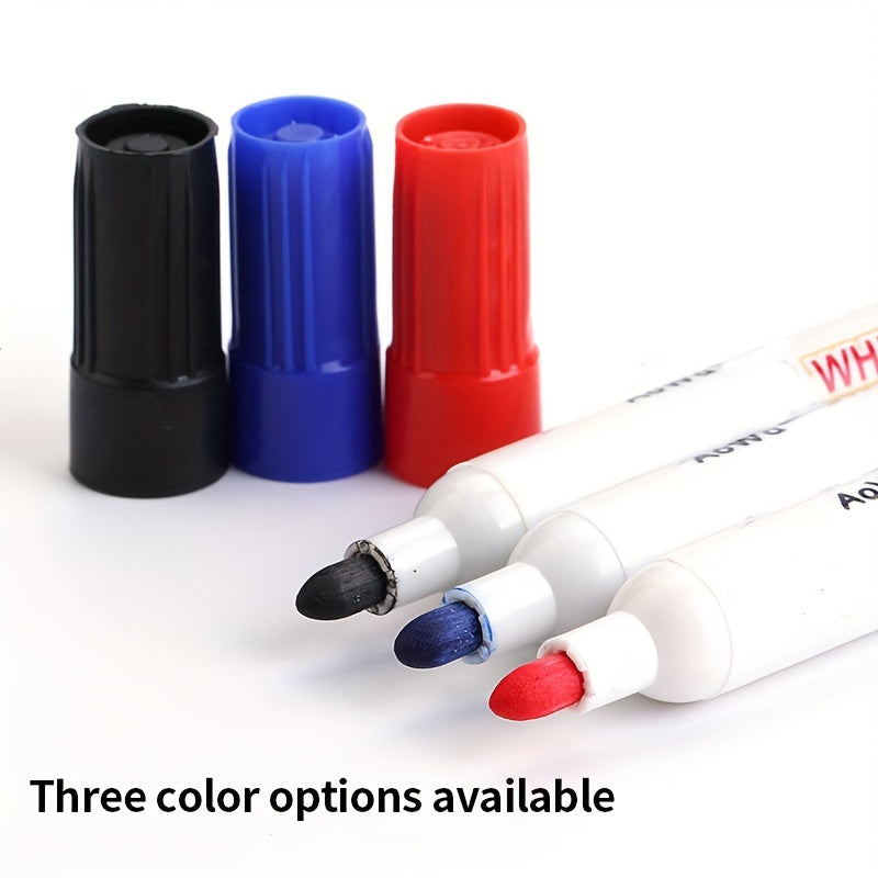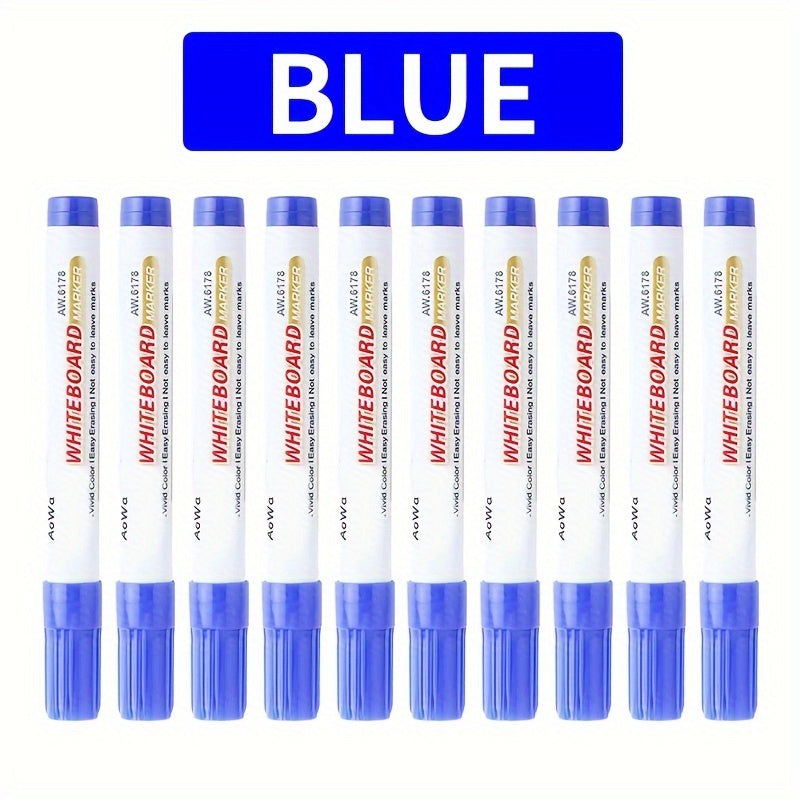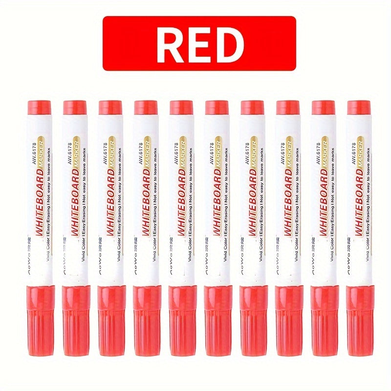 O'qituvchilar va sinflar uchun o'rta nuqtali 10 ta oq doska markerlari to'plami, qora, qizil va ko'k ranglarda mavjud.