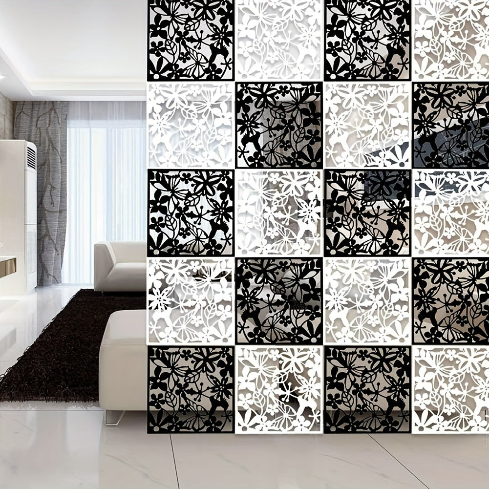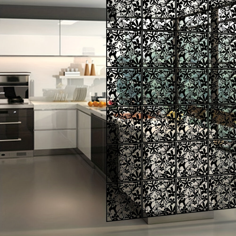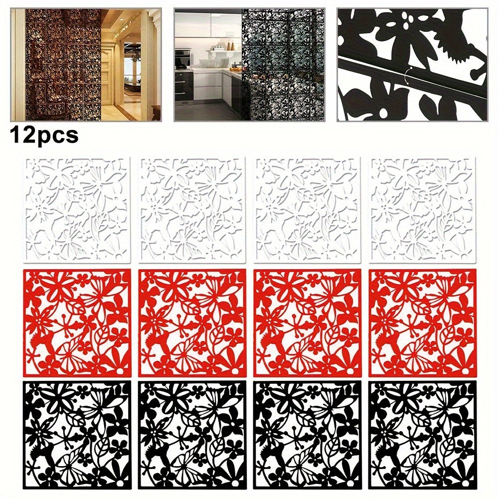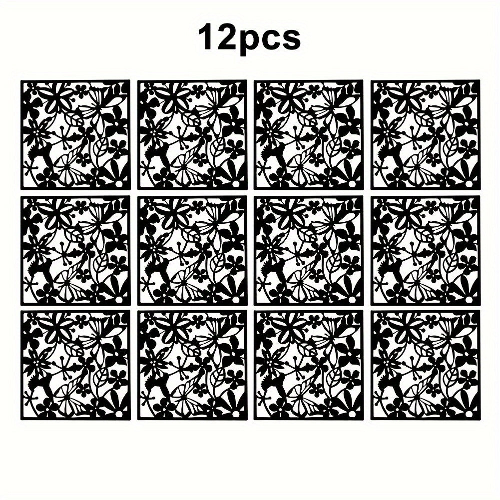 12 ta Elegant Qora Devorga Osiladigan Dekor Elementlari - O'yilgan Bo'sh Dizayn, Elektr energiyasi talab qilinmaydi