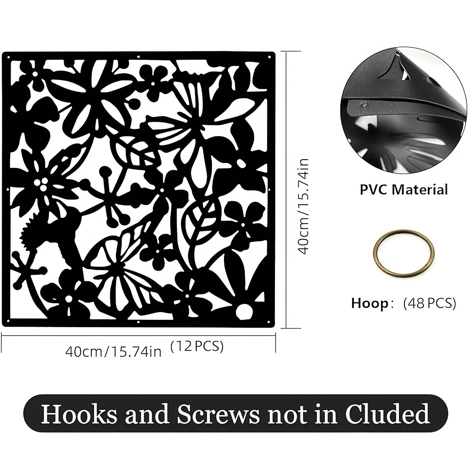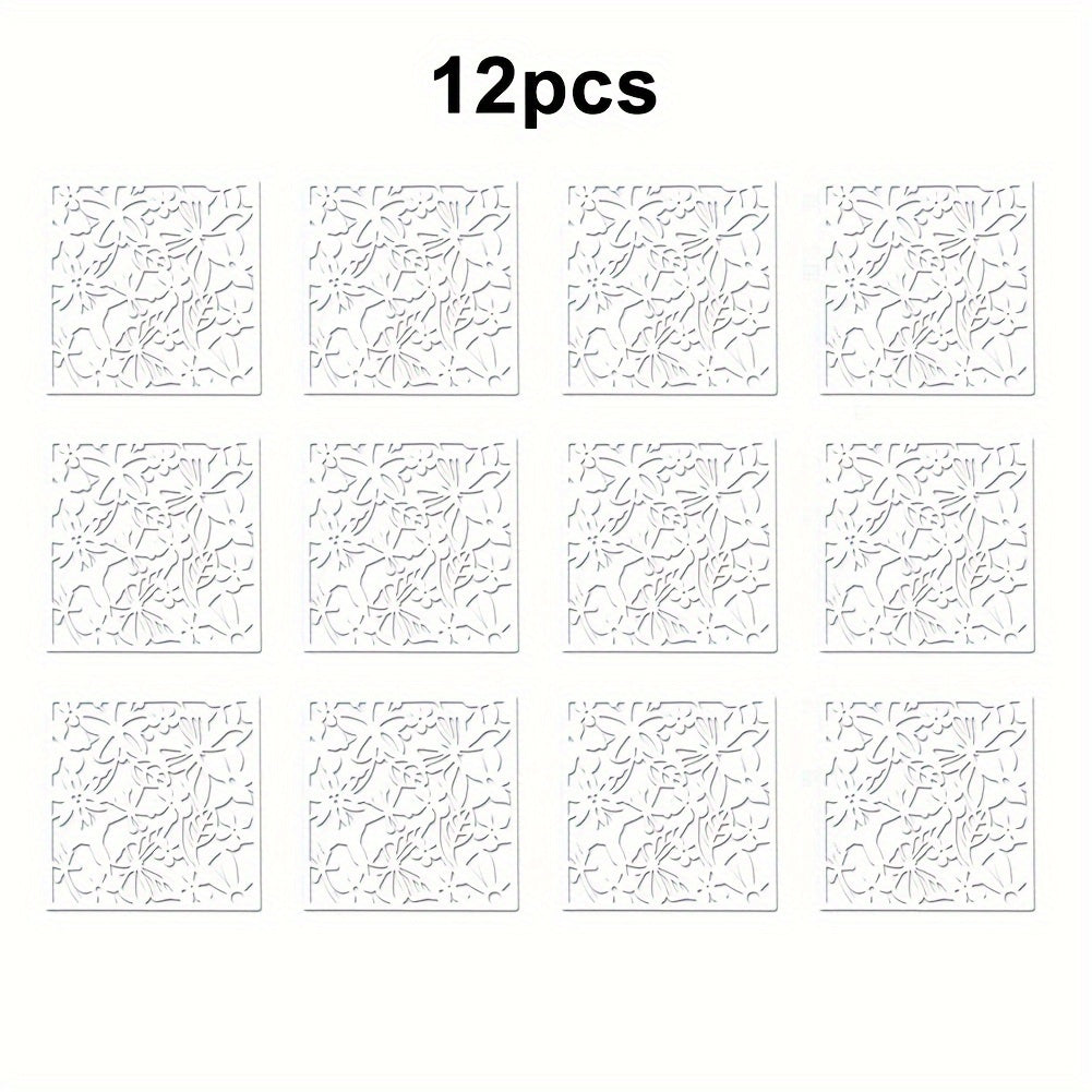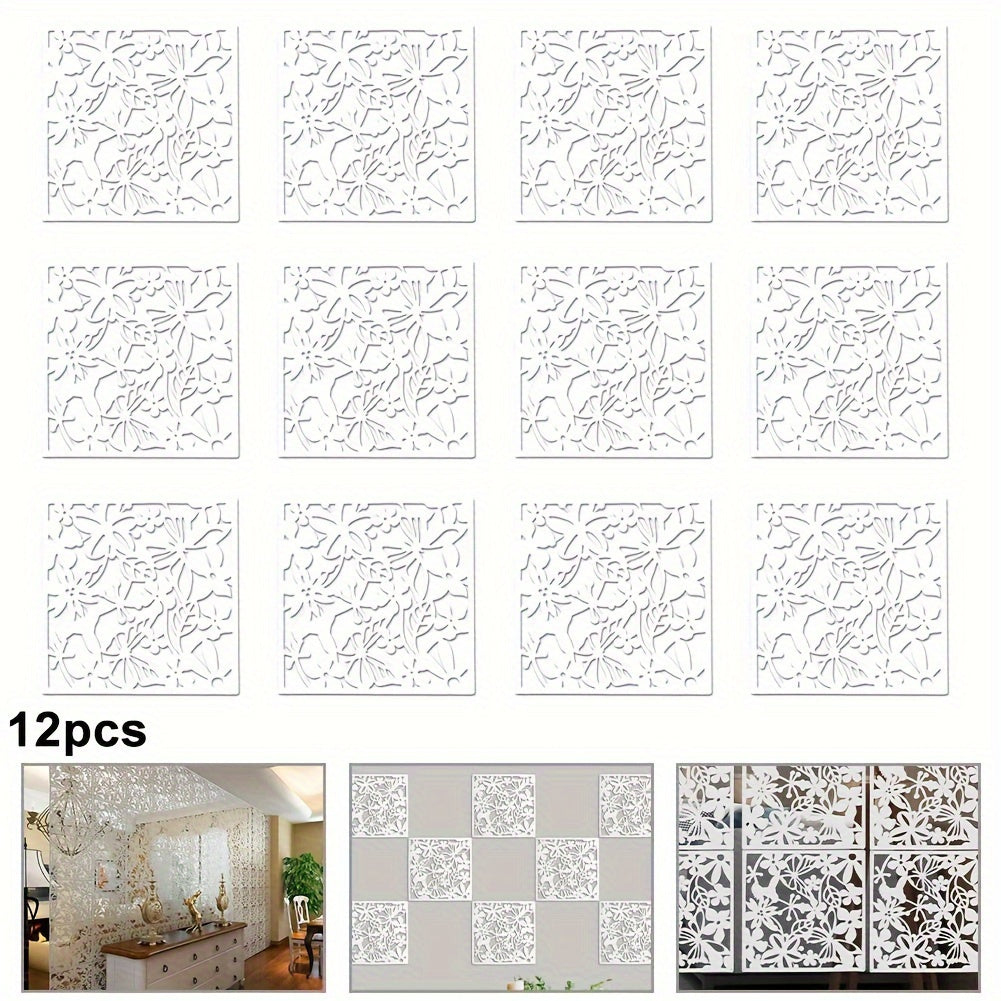 12 ta Elegant Qora Devorga Osiladigan Dekor Elementlari - O'yilgan Bo'sh Dizayn, Elektr energiyasi talab qilinmaydi