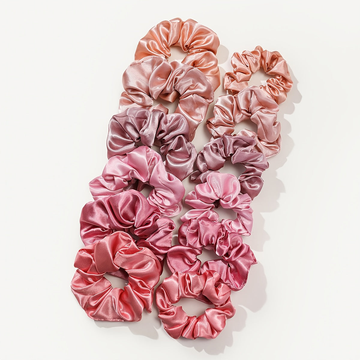 Ayollar va qizlar uchun 12 ta to'liq rangli satinning soch to'plamlari va tassel detallari bilan to'plam