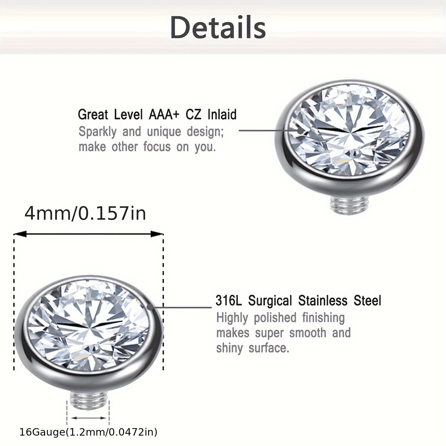 Erkaklar va ayollar uchun 15 dona Kubik Sirkoniy dermal ankhor ustki va 4 dona zanglamaydigan po'lat asoslar mikrodermal teshik uchun zargarlik buyumlari to'plami