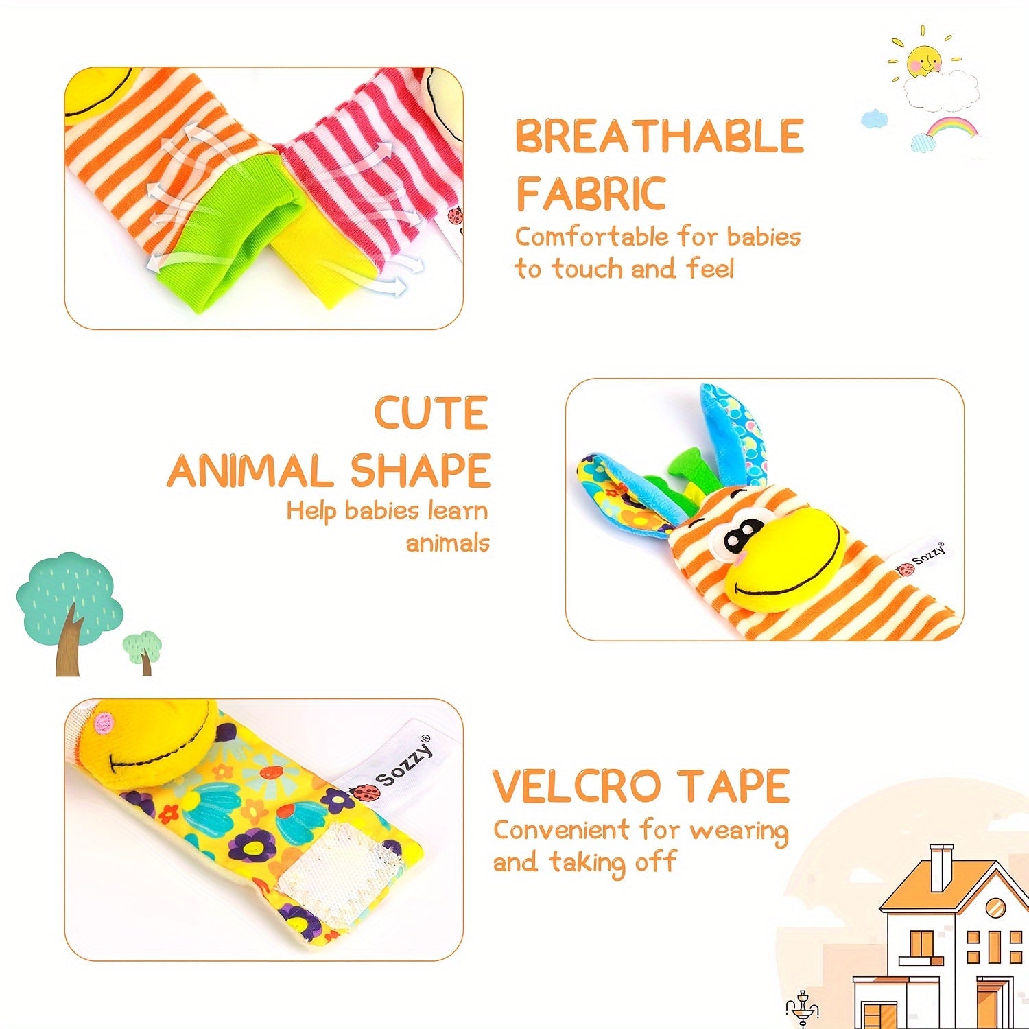 2/4 ta to'plam chaqaloq bilak rattl sokklari va oyoq topuvchi o'yinchoqlar, yangi tug'ilgan chaqaloqlar uchun mo'ljallangan, bolalar va kichik bolalar uchun yumshoq sezgir rattl sokklari, Halloween uchun mukammal