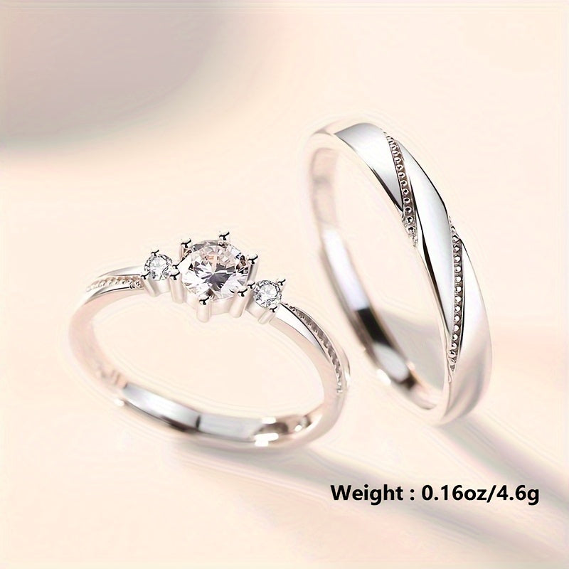 2 dona 925 toza kumush juftlik uzuklari, sun'iy zirkoniya bilan, "Birinchi qarashda sevgi" dizayni va ochiladigan uzuk bilan. Har bir uzukning og'irligi taxminan 4.6g. To'y sovg'alari yoki sevgi ramzlari uchun mukammal.