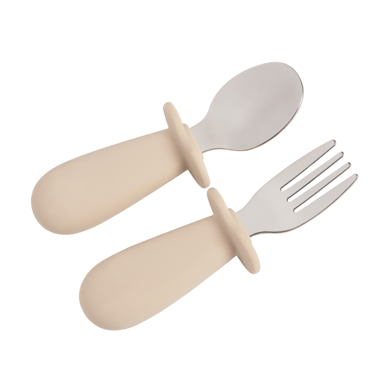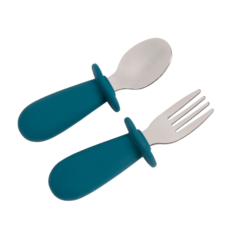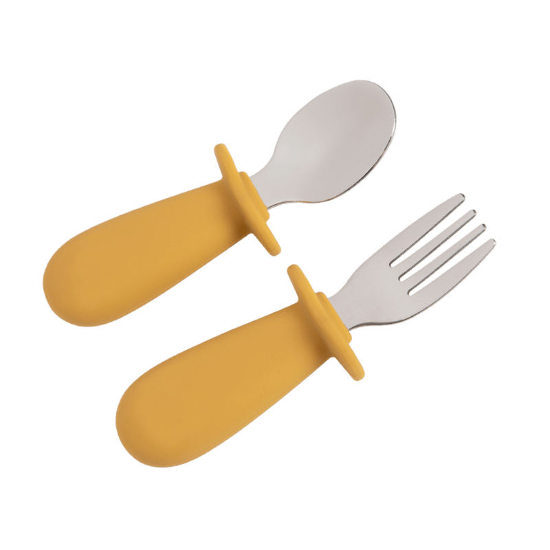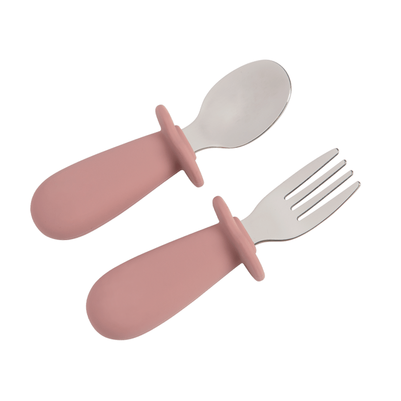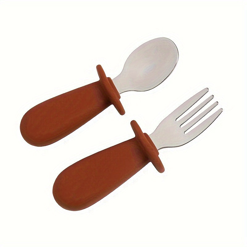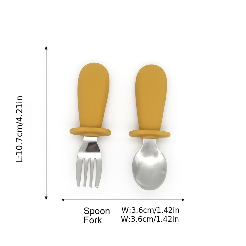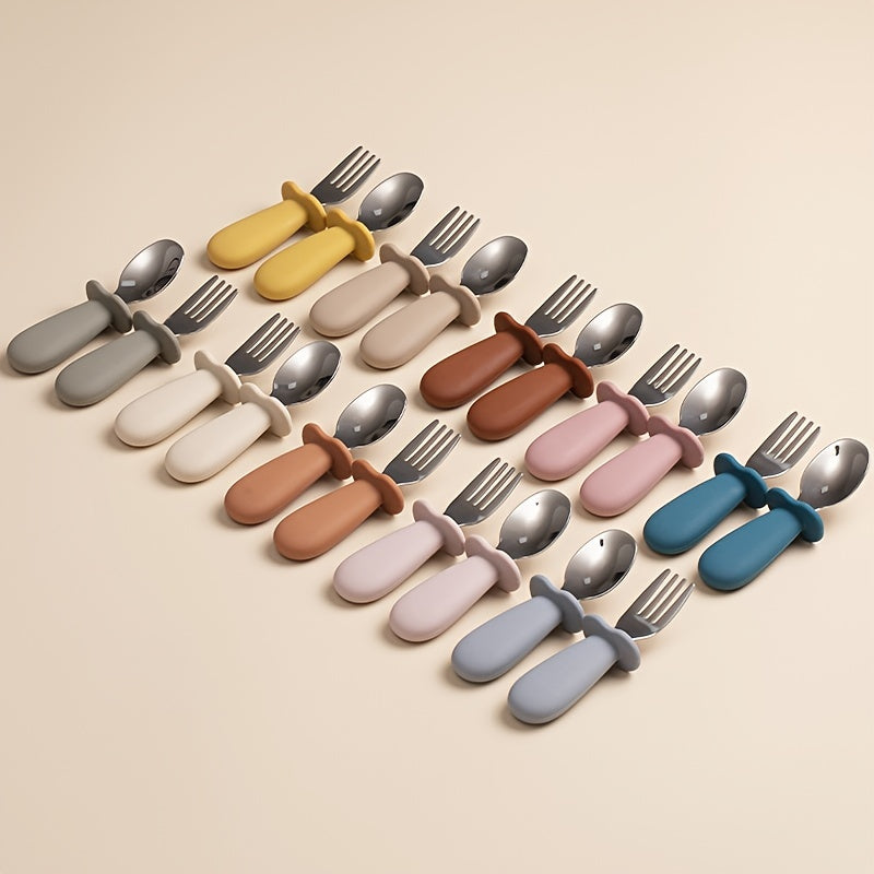2 ta bolalar qoshiq va vilkalar to'plami, mustahkam ranglarda, zanglamaydigan po'lat va silikon materialidan tayyorlangan - bolalar uchun mukammal idish-to'plam, chaqaloq ovqatini berish uchun ideal