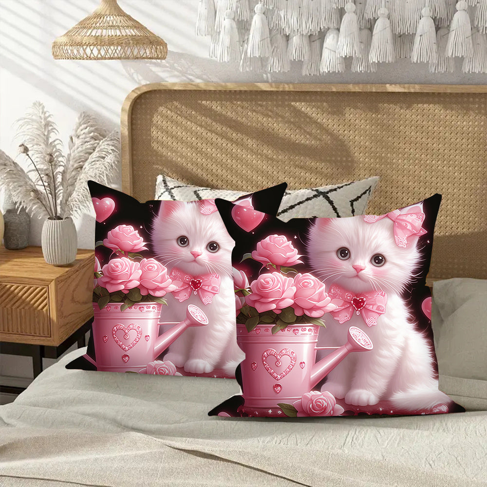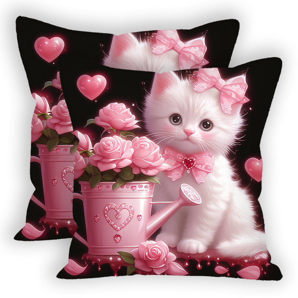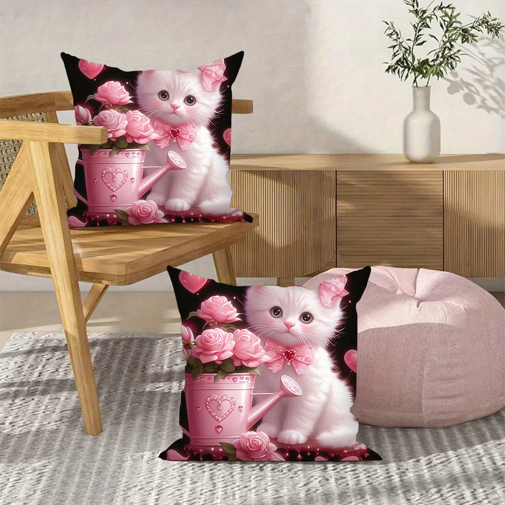 2 ta jozibali mushuk va gullar bilan bezatilgan yostiq qoplari to'plami - Yumshoq polyesterdan tayyorlangan, mashinada yuvish mumkin - Mehmonxona, yotoqxona yoki ofisni bezatish uchun ideal - O'lchami: 45.72x45.72 sm