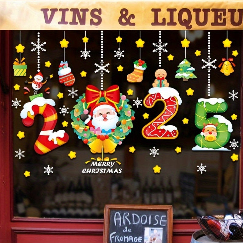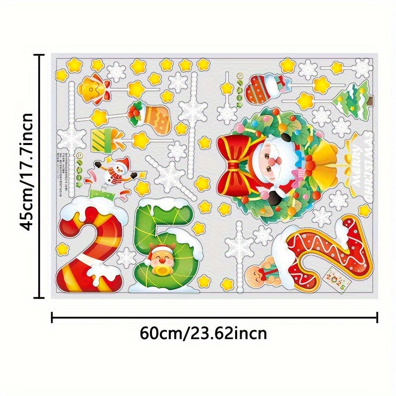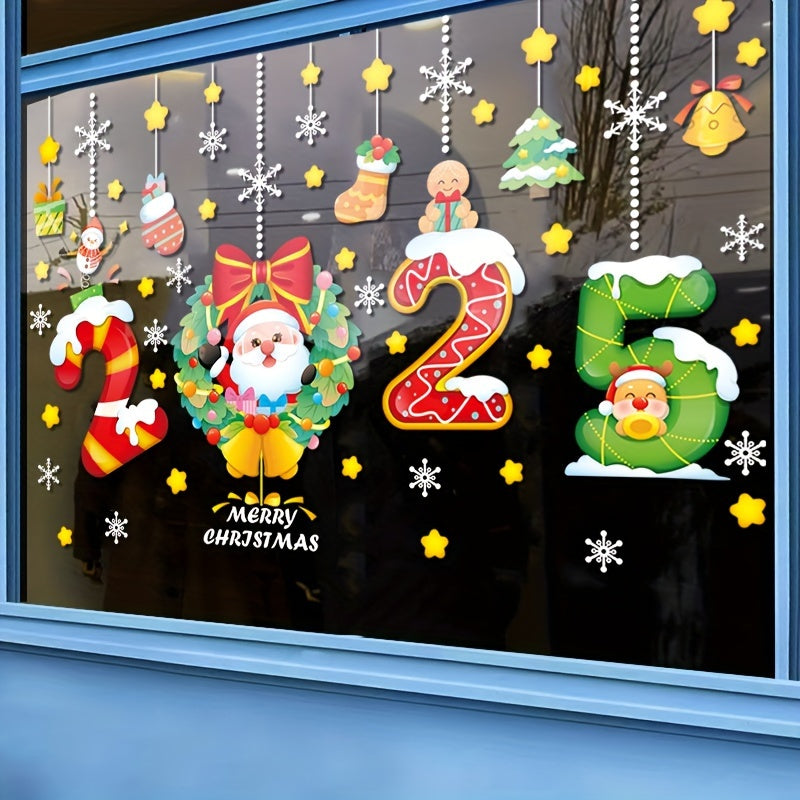 2 ta Yilgi bayram uchun oynaga yopishtiriladigan dekorativ elementlar, qayta ishlatiladigan Santa va sovgʻa decal'lari
