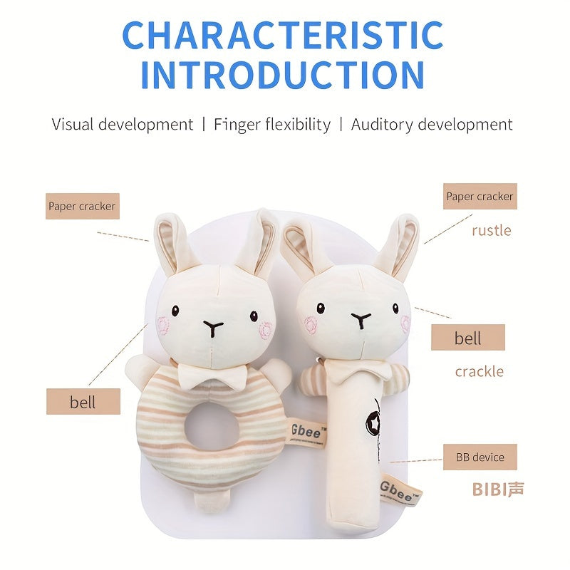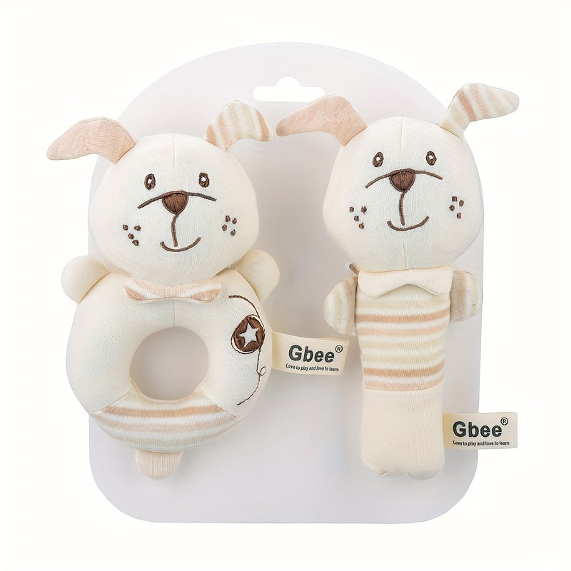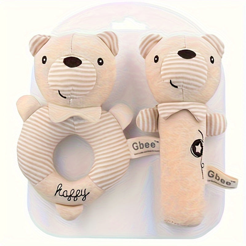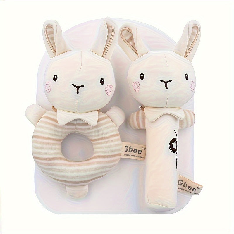 2 ta paxta rattles to'plami, 0-1 yoshdagi bolalar uchun yumshoq tutqichli o'yinchoqlar, shirin qo'ng'iroq ovozlari bilan, bej rangda - chaqaloqlar uchun mukammal qulay o'yin do'stlari