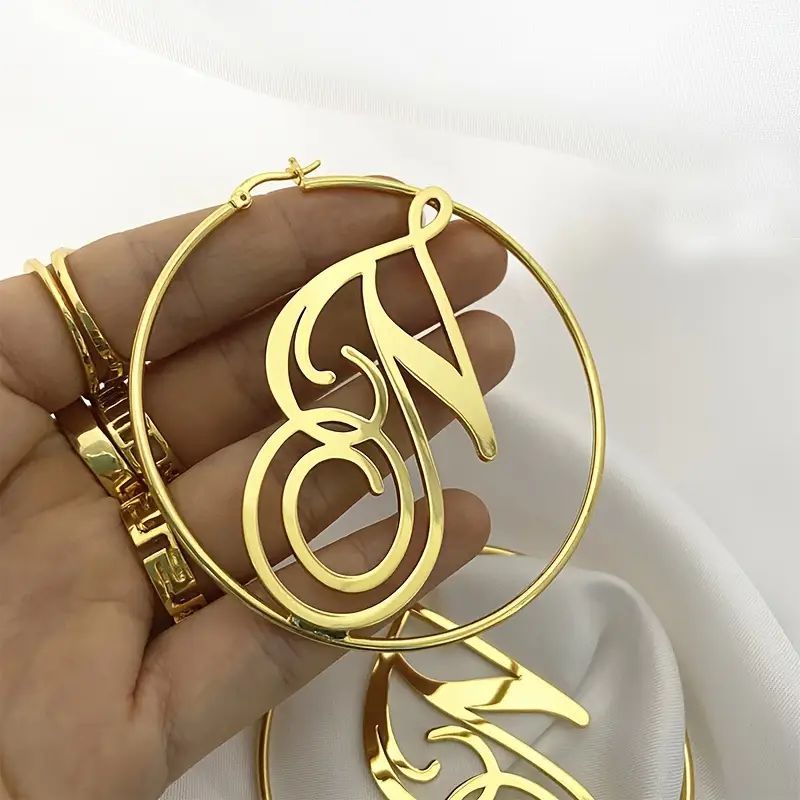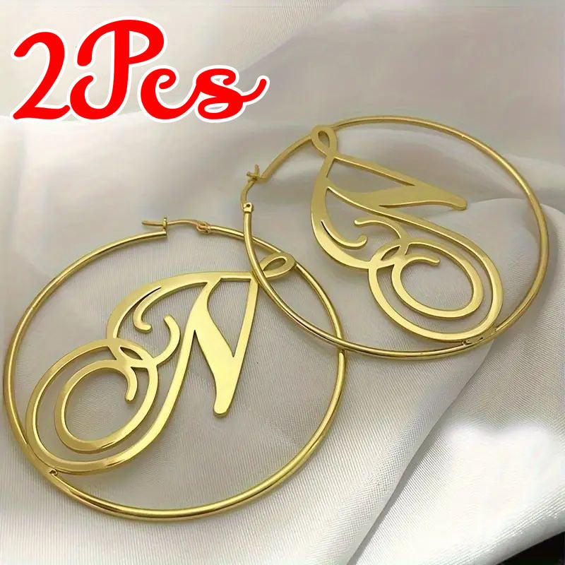 2 ta Maxsus Nikel Qoplamali Po'latdan Yasalgan Harf Halqalari - Harf Dizayni bilan Shaxsiylashtirilgan, Partiyalar va Bayram Tadbirlarida Ajoyib, Kelinlar uchun Sovg'a yoki Rojdestvo Sovg'alari uchun Mukammal.