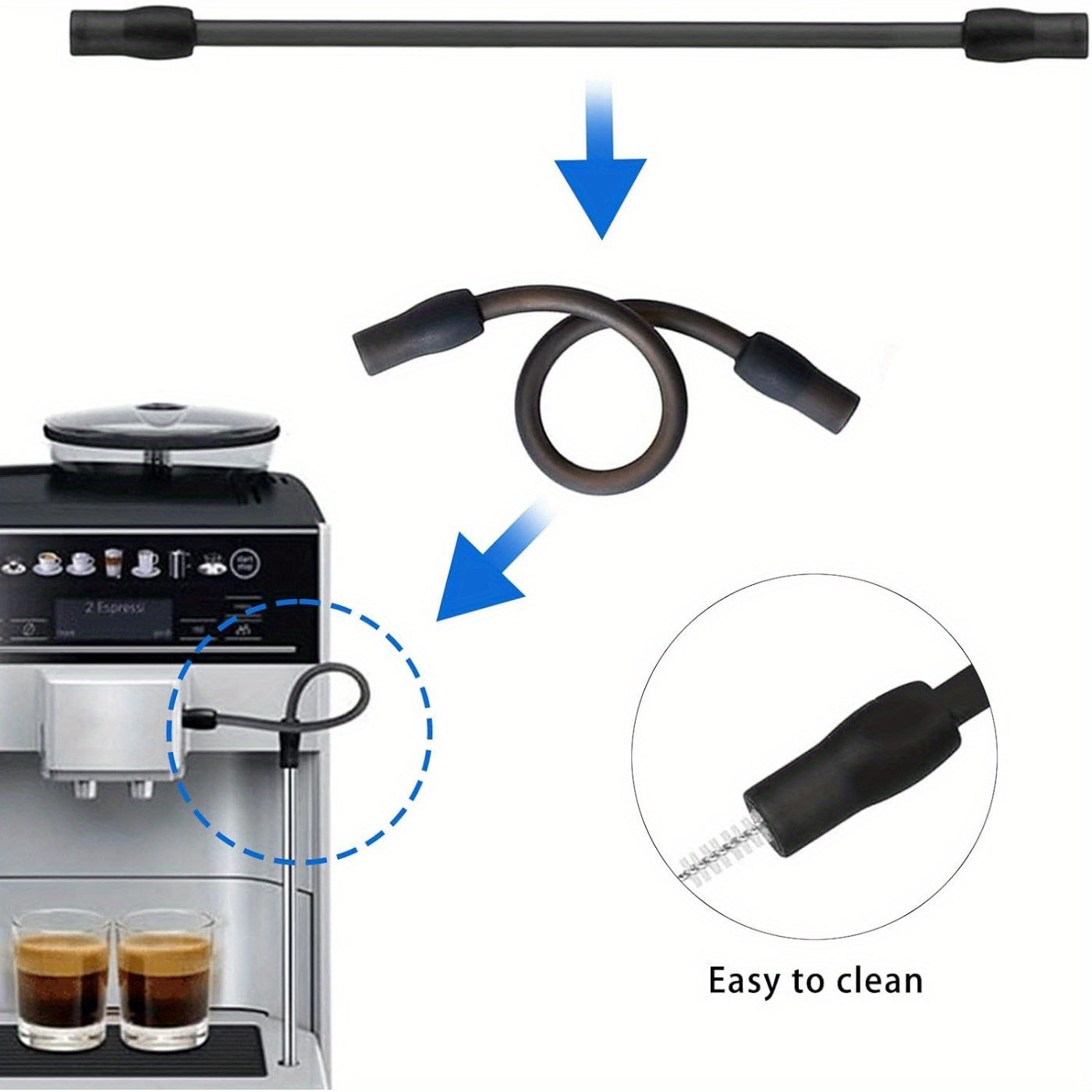 2 ta to'liq avtomatik qahva mashinasi sut quvurlari to'plami, 2 ta tozalash cho'tkasi bilan zanglamas po'latdan yasalgan aksessuarlar, Siemens EQ6 va Bosch VeroAroma to'liq avtomatik qahva mashinalari bilan mos keladi.