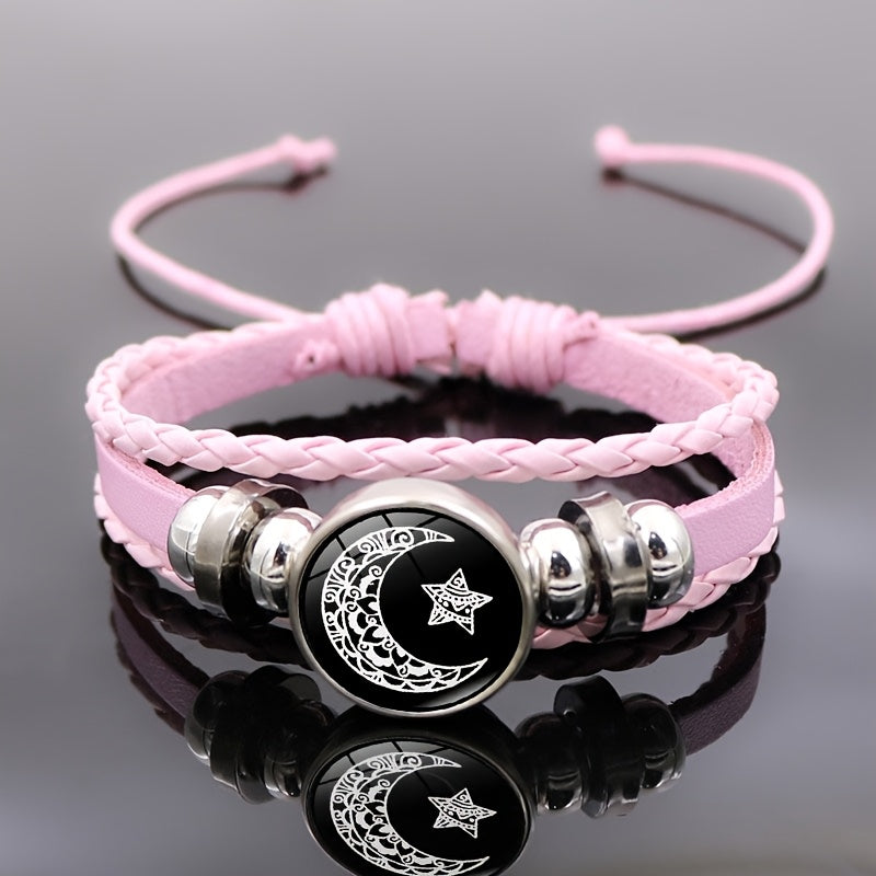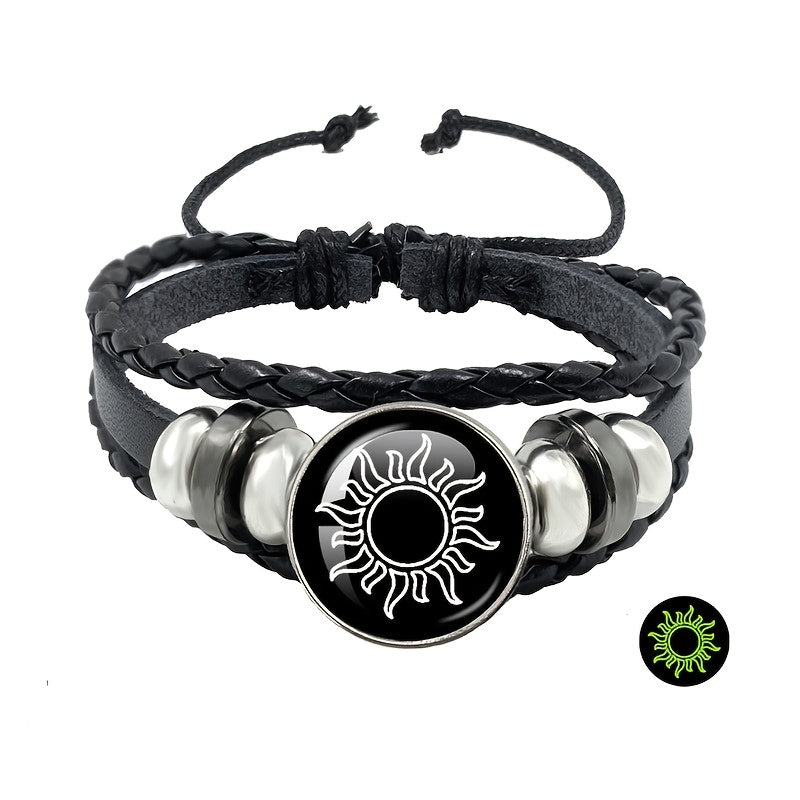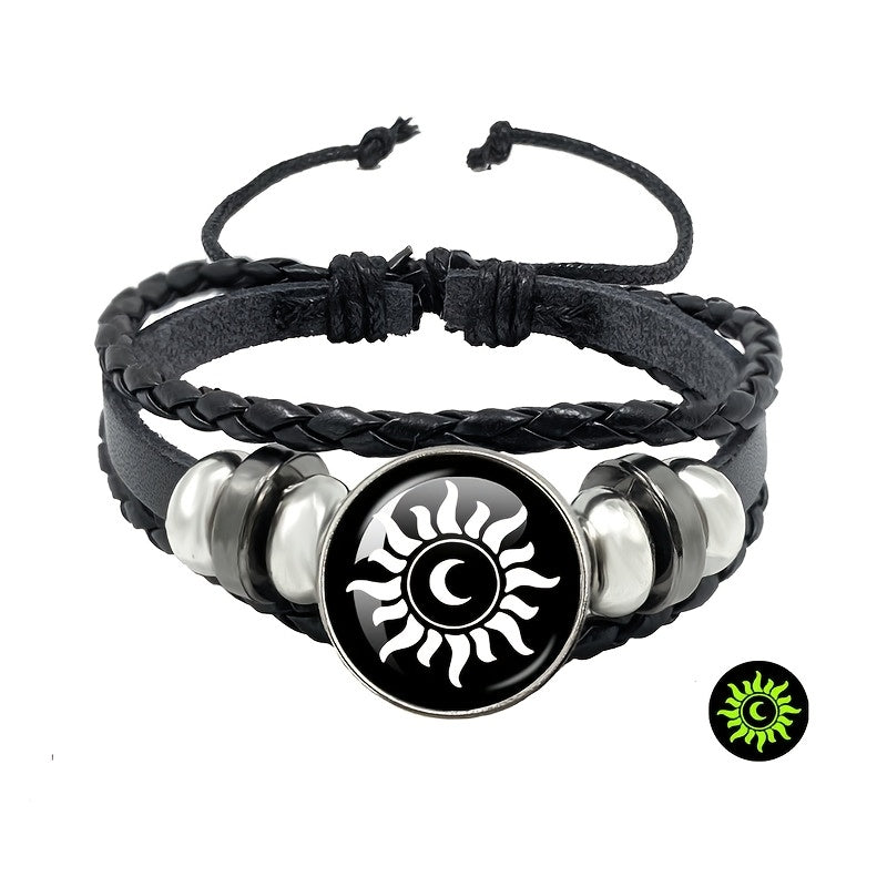 2 ta qorong'uda porlaydigan Quyosh va Oy charm bilaguzuklar to'plami, sun'iy charm ipdan tayyorlangan, juftliklar, erkaklar va ayollar uchun mukammal. Qiz do'stingiz yoki partiya uchun ideal sovg'a.