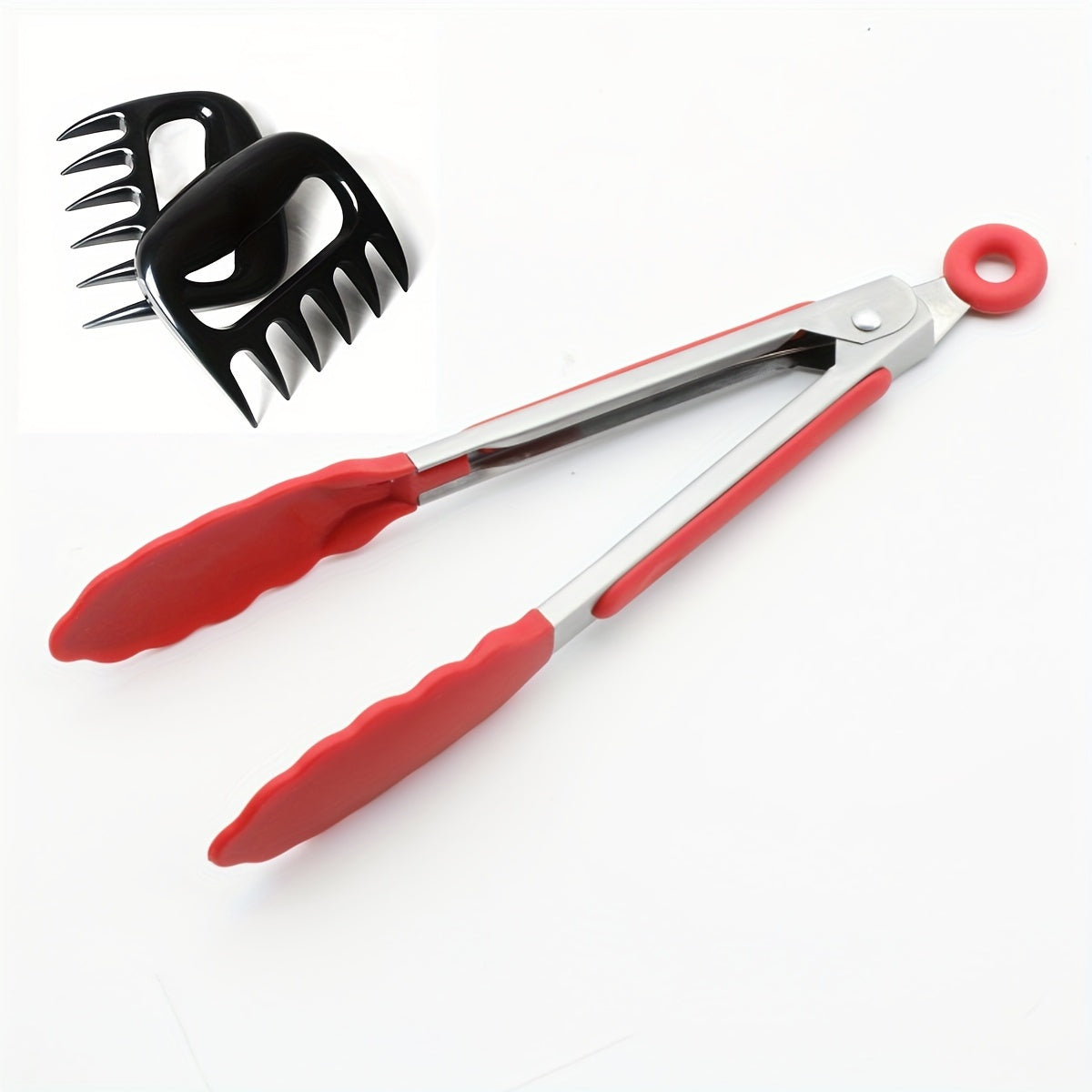 2 ta zanglamaydigan po'latdan yasalgan oshxona tongslari, silikon uchlari va 3 ta go'shtni maydalash qobig'i, BBQ va pishirish uchun