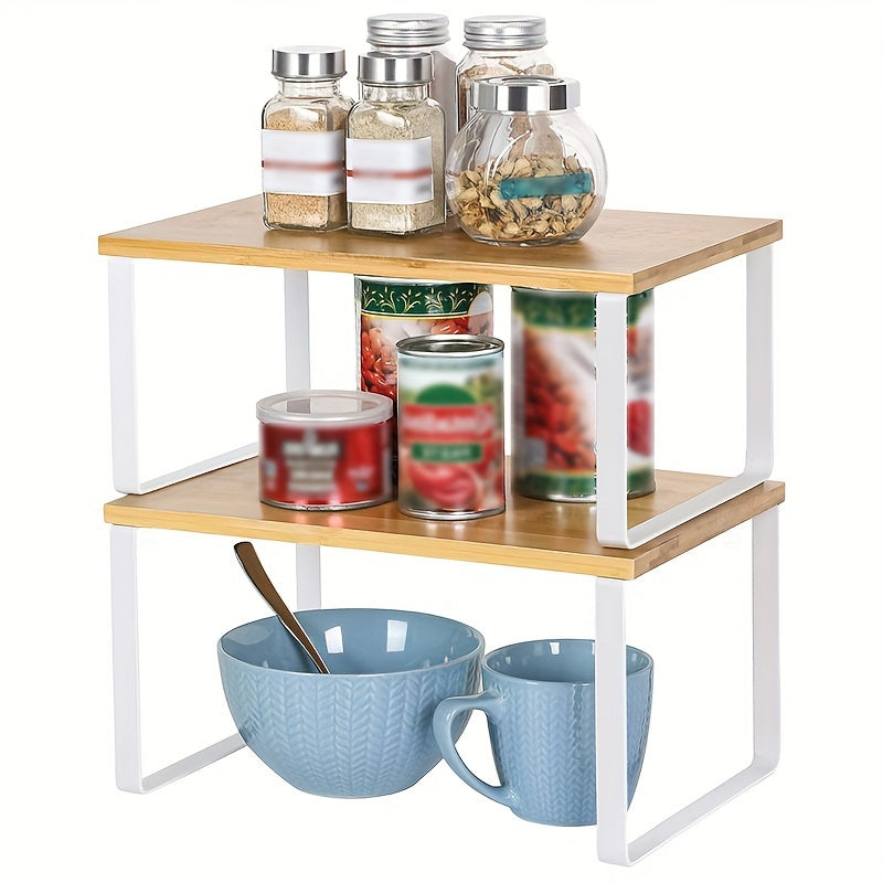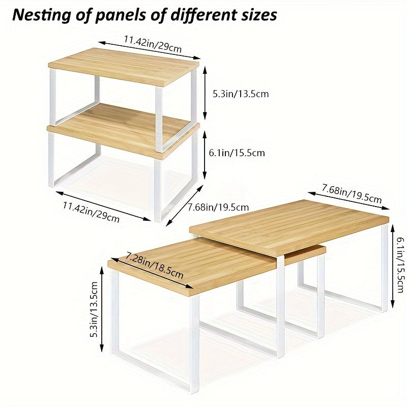2 ta Rustik Yog'och Shkaf Polka Tashkiliy, Oshxona uchun Qatlamli Ziravorlar Racklari, Countertoplar uchun Ko'p Maqsadli Kengaytiriladigan Saqlash Polkalari, Hammom Tashkiliy Yechimi, MDF Qattiq Yog'ochdan Yasalgan, Ochiq Saqlash Usuli, Montaj Zarur