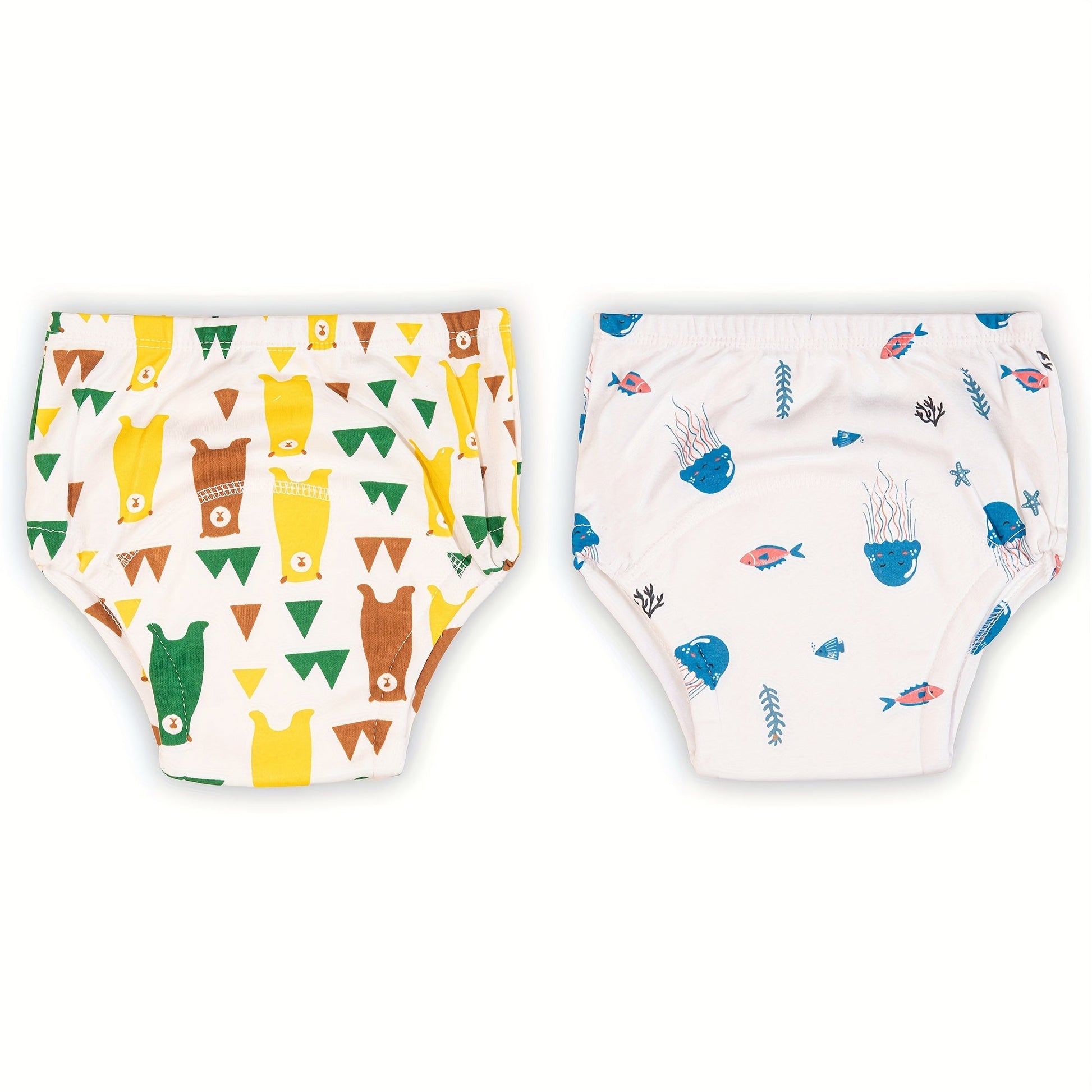2 ta yumshoq potty o'rgatish shimlari to'plami - Qiziqarli multfilm bosma dizayni bilan, turli ranglarda qayta ishlatiladigan pampers shortlari - Halloween va Rojdestvo uchun ideal sovg'a