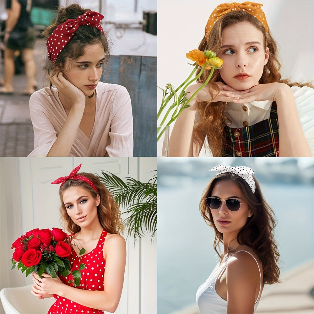 2 ta ayollar yozgi sochbog'lari to'plami, Polka Dot bilan bog'langan bowlar va quyon quloqlari bilan keng boshbog'lar, kundalik kiyim uchun