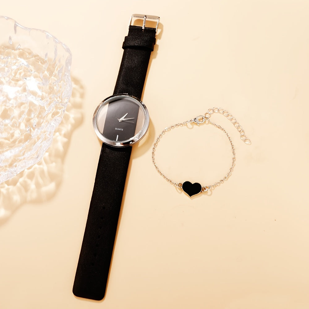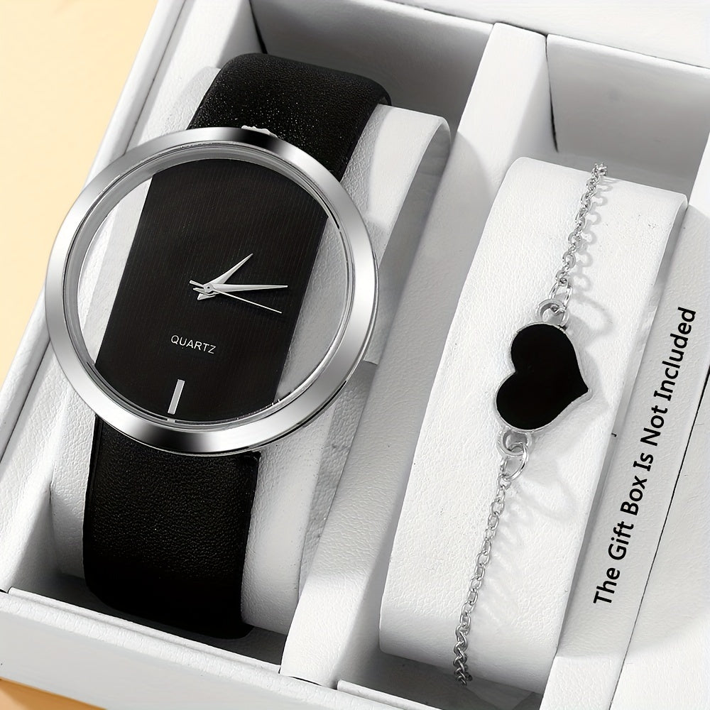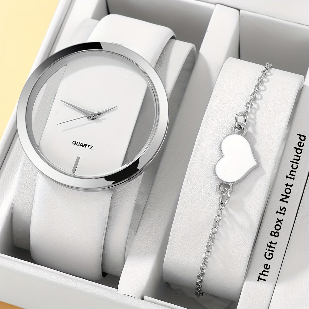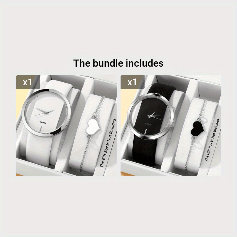 2 ta ayollar modasi soatlari to'plami, bo'sh dizayni bilan, kvarts mexanizmi, PU charm bilan yurak bilagti