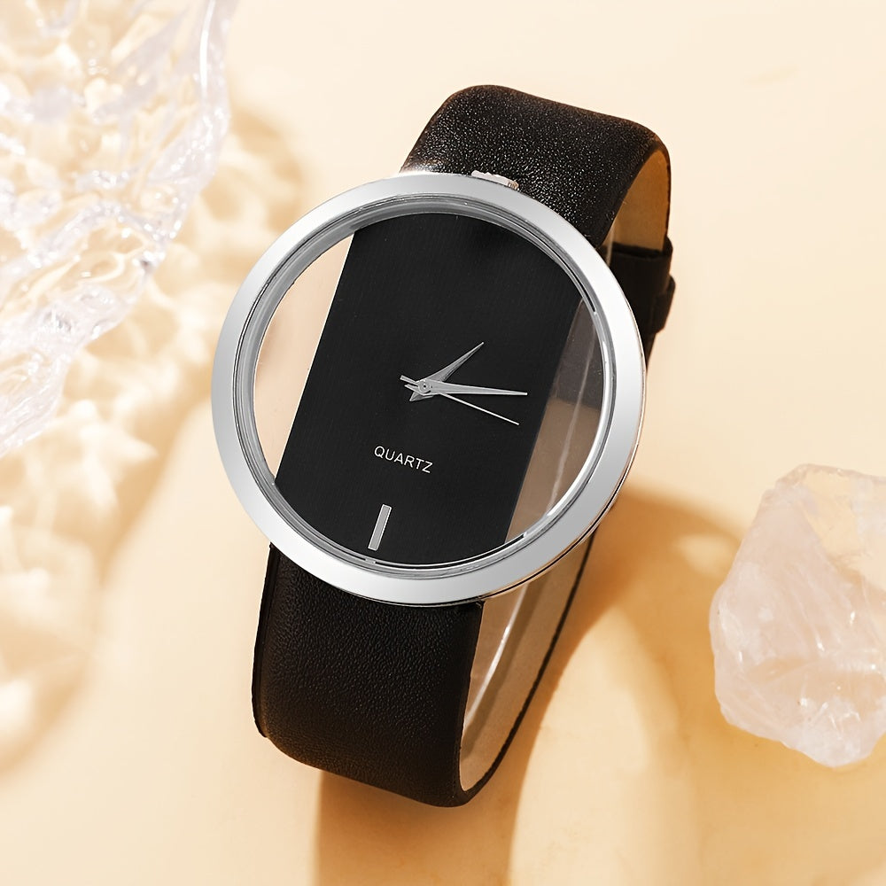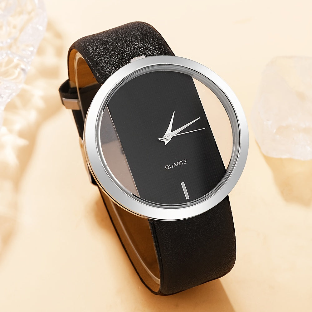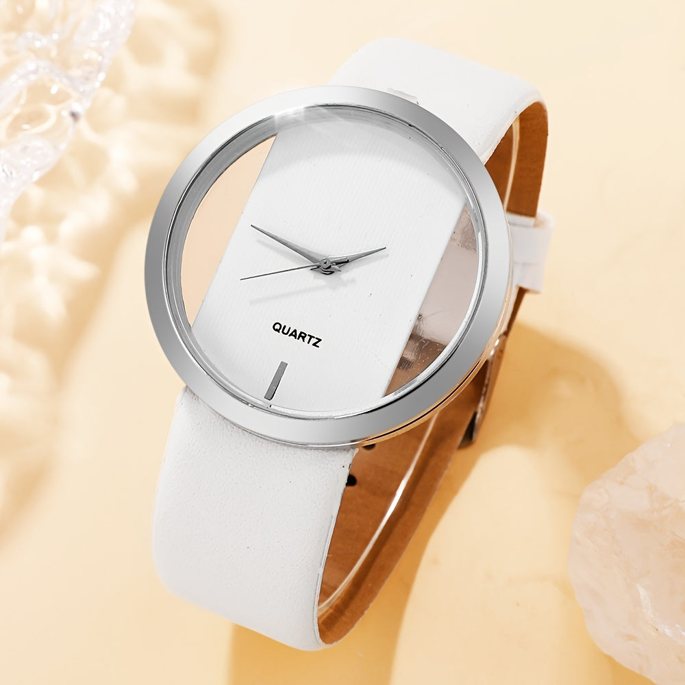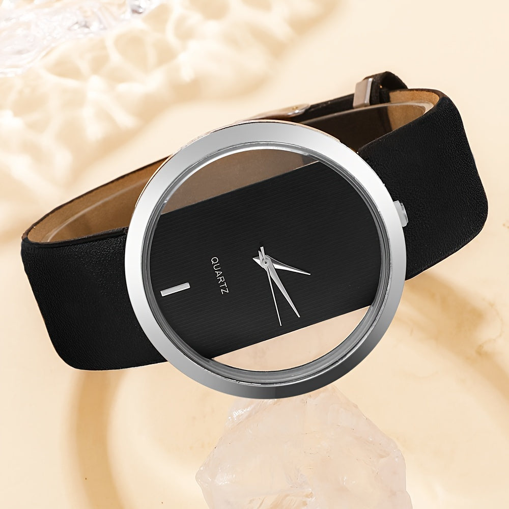 2 ta ayollar modasi soatlari to'plami, bo'sh dizayni bilan, kvarts mexanizmi, PU charm bilan yurak bilagti