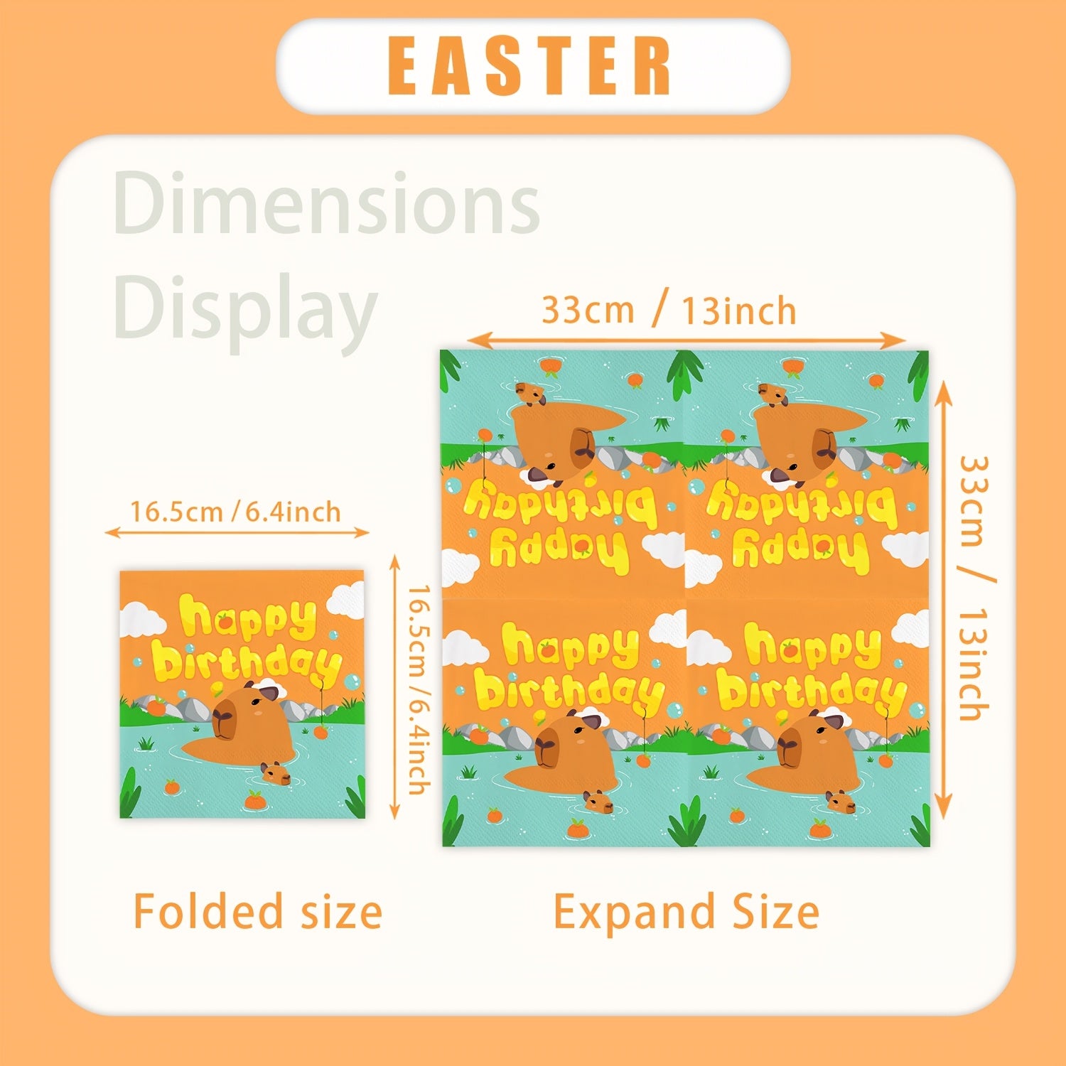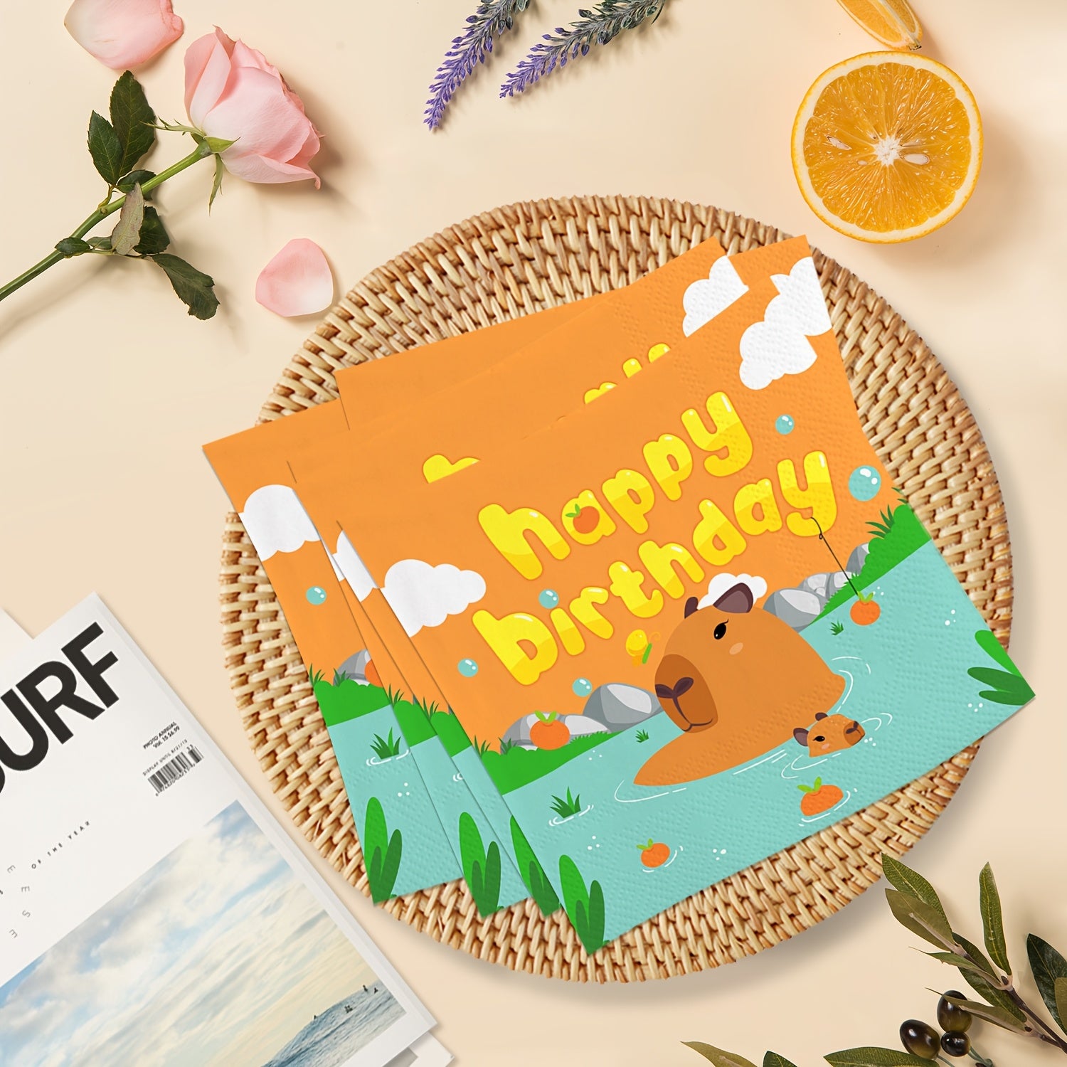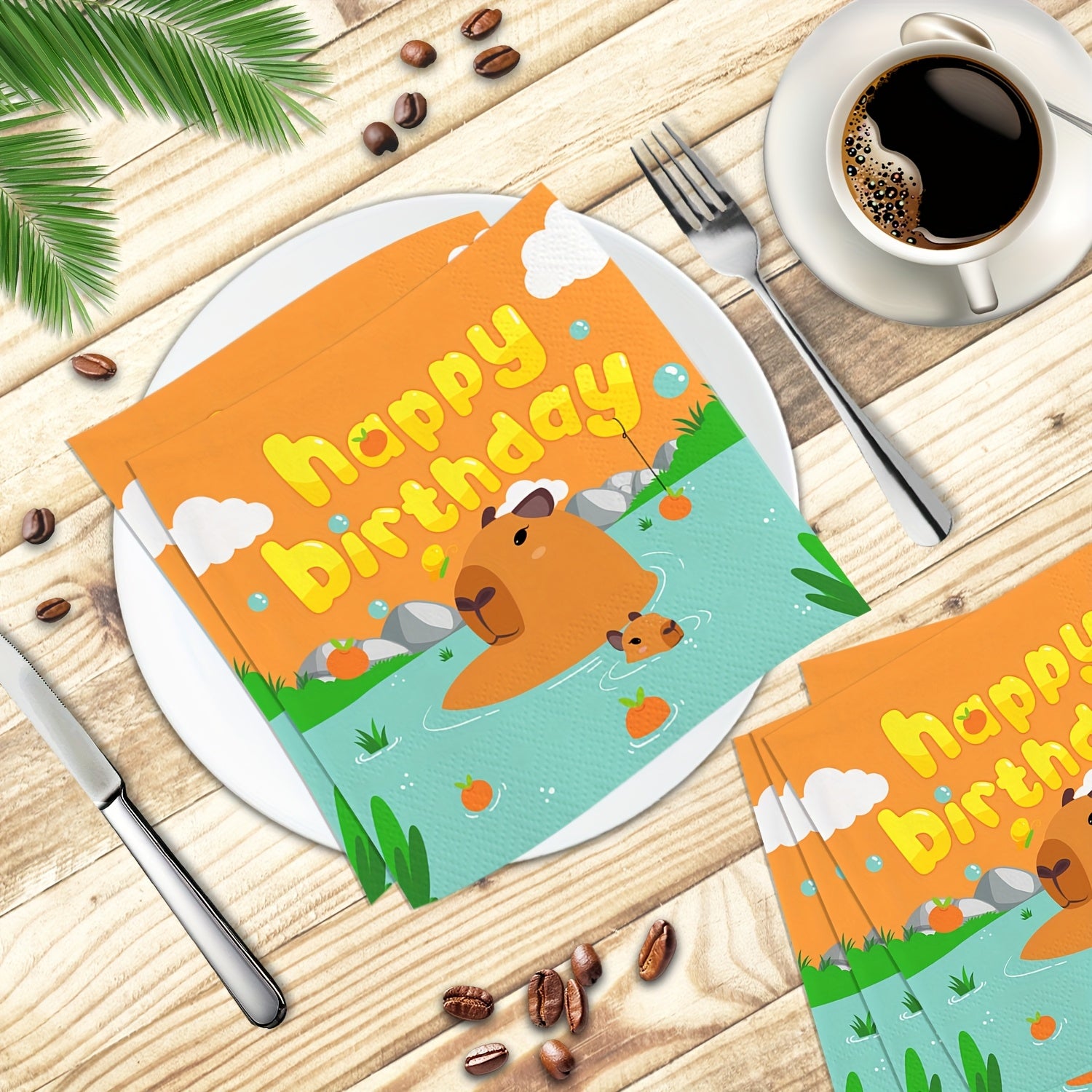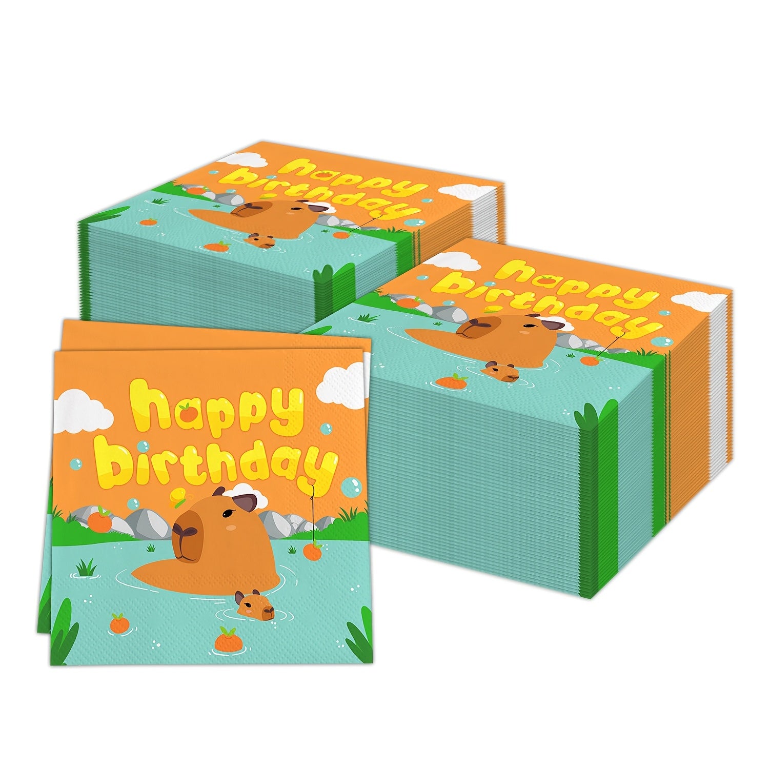 Bolalar tug'ilgan kuni va tadbirlar uchun 20 ta apelsin rangli multfilm Capybara partiyali salfetkalar to'plami